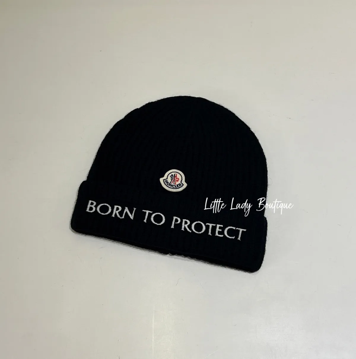 KIDS MONCLER 黑底白英文字(BORN TO PROTECT) 毛帽