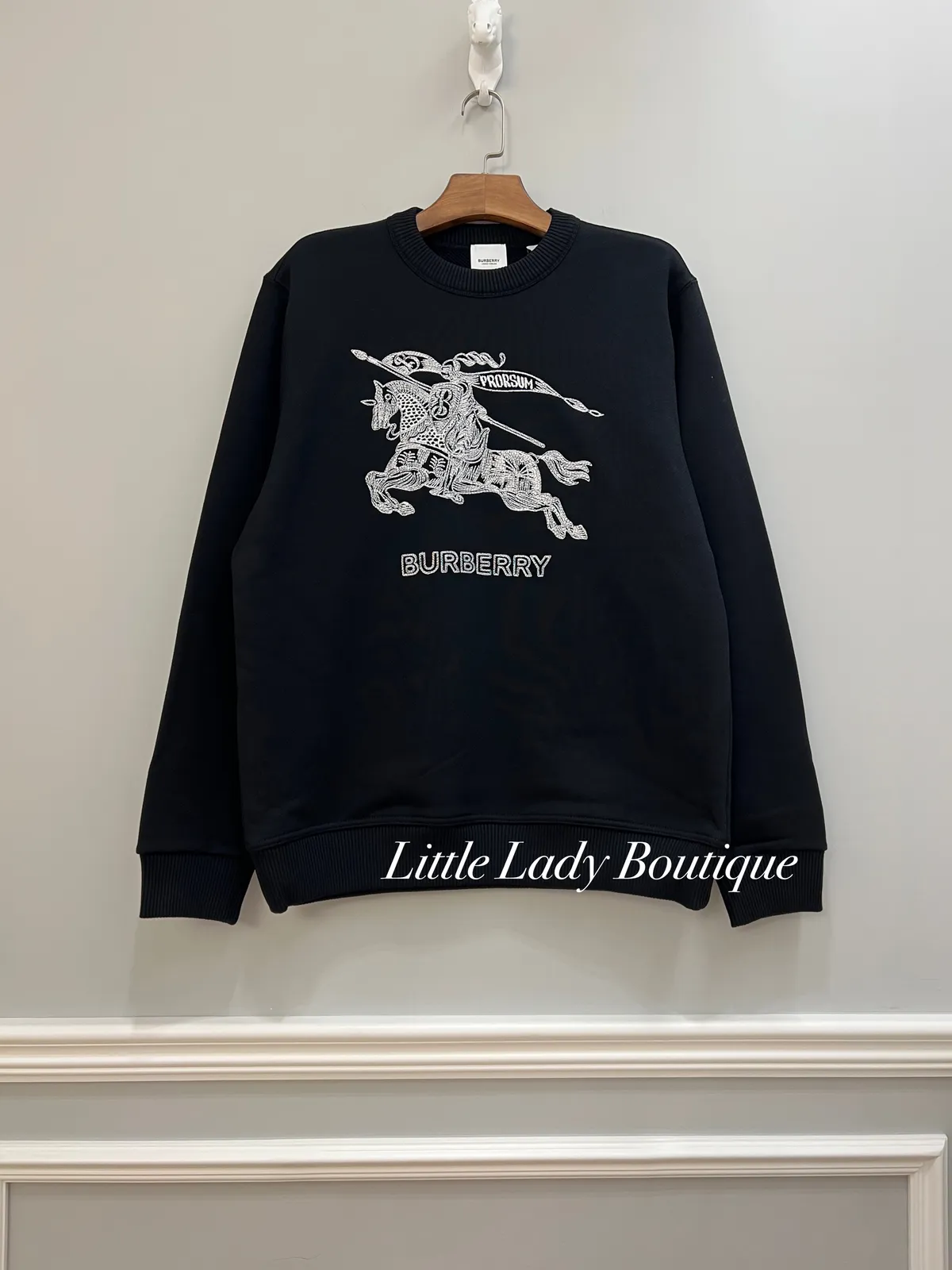 BURBERRY 黑底 白戰馬刺繡圖案 長袖衛衣