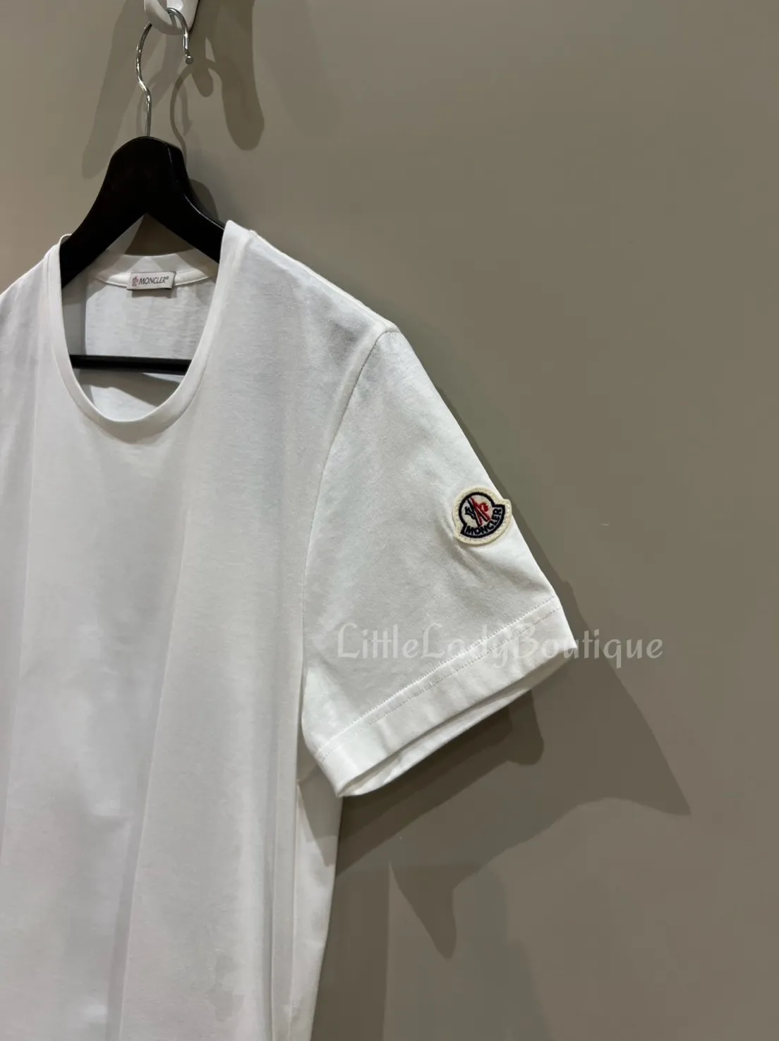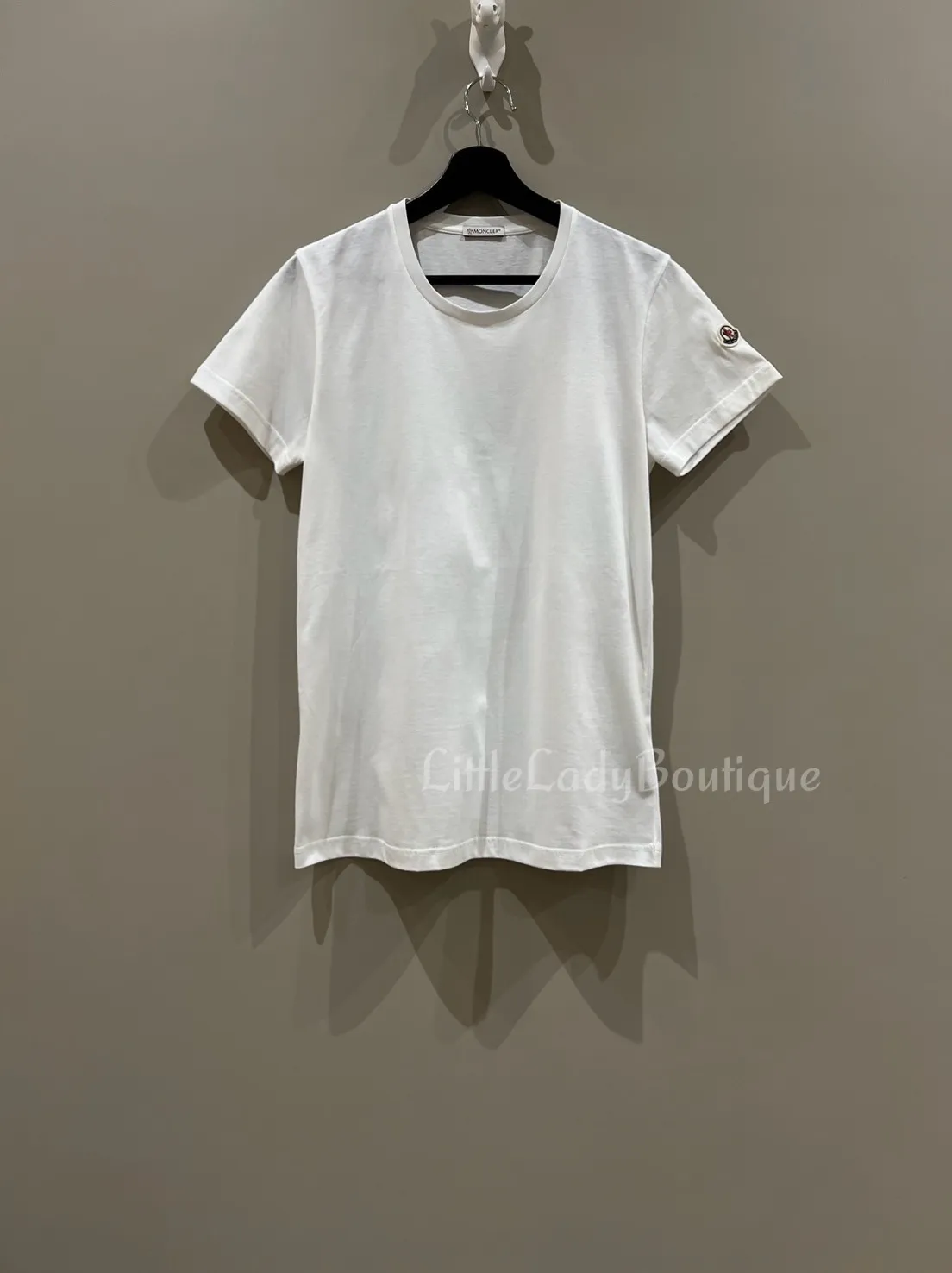 MONCLER 女士 素面白底 左肩小LOGO 短袖上衣