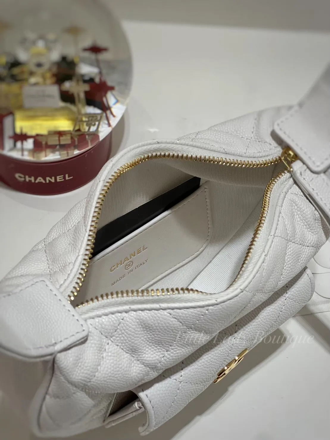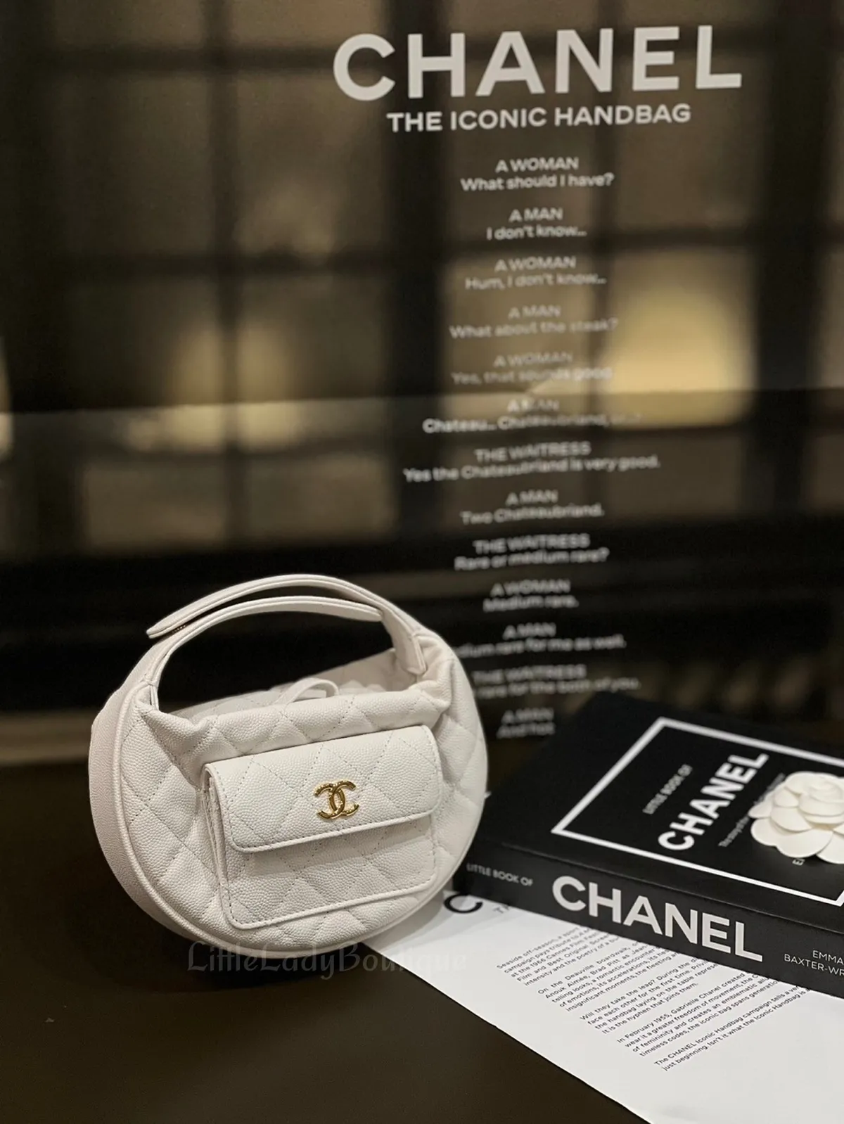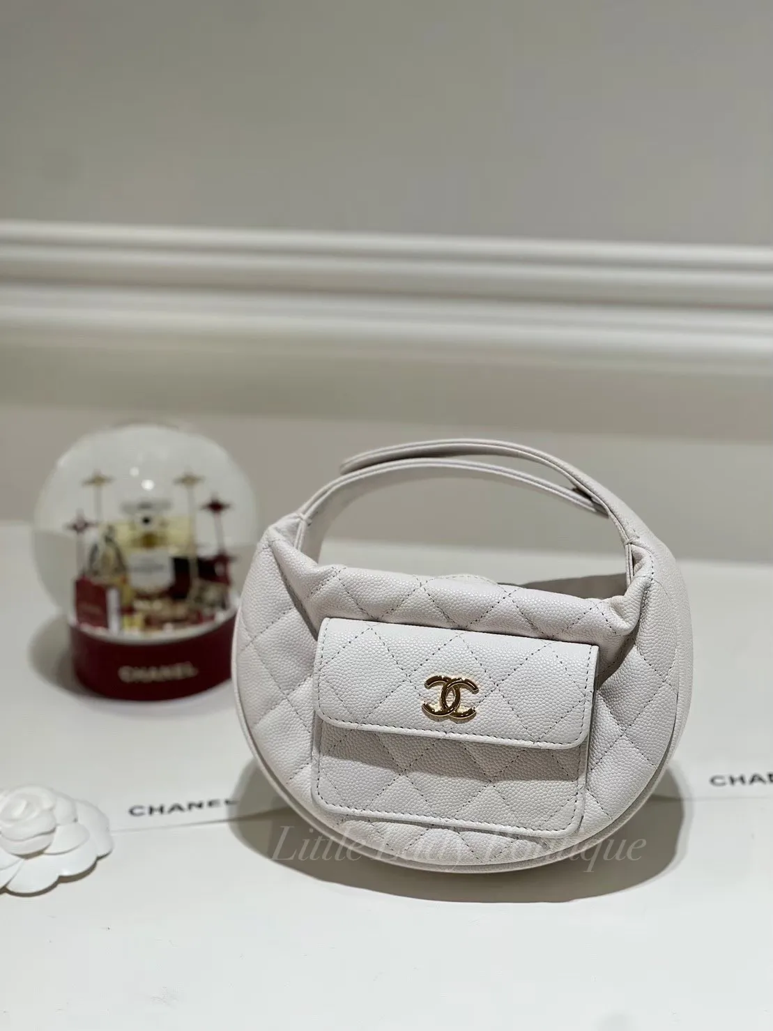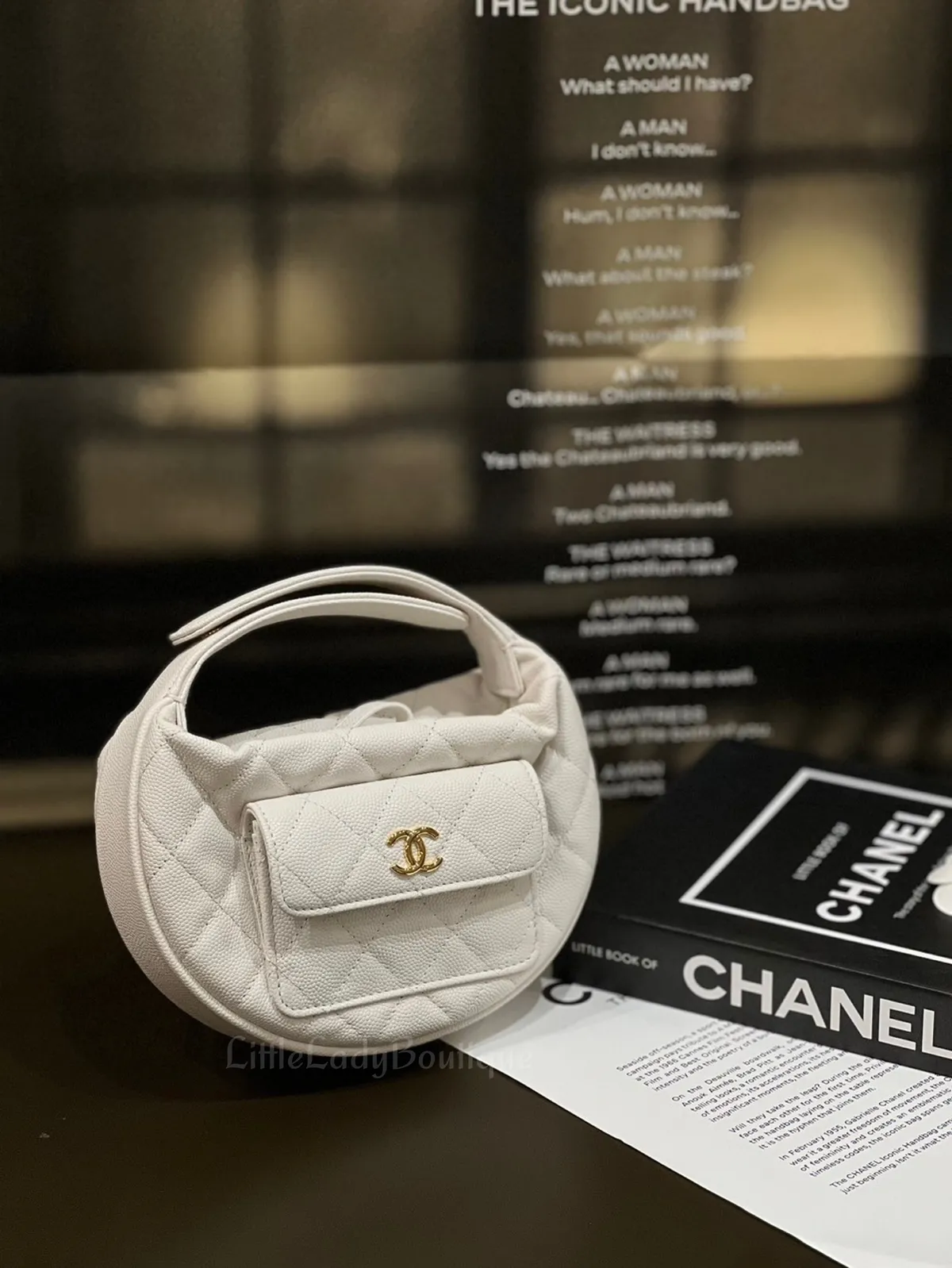 CHANEL 白色 金釦 菱格紋 呼拉圈手拿包