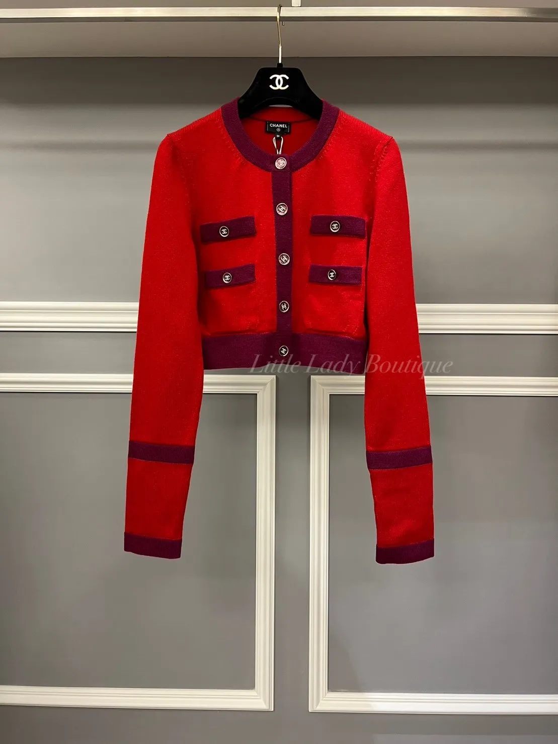 CHANEL 女士 紅底 深紅領 短版針織長袖外套