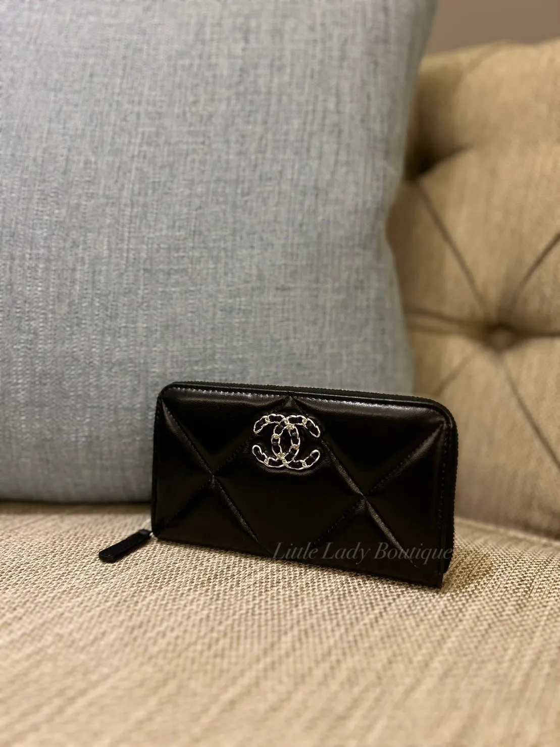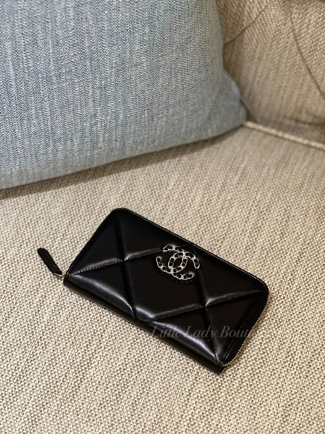 CHANEL 19系列造型 黑色銀釦 ㄇ字型拉鍊 中夾