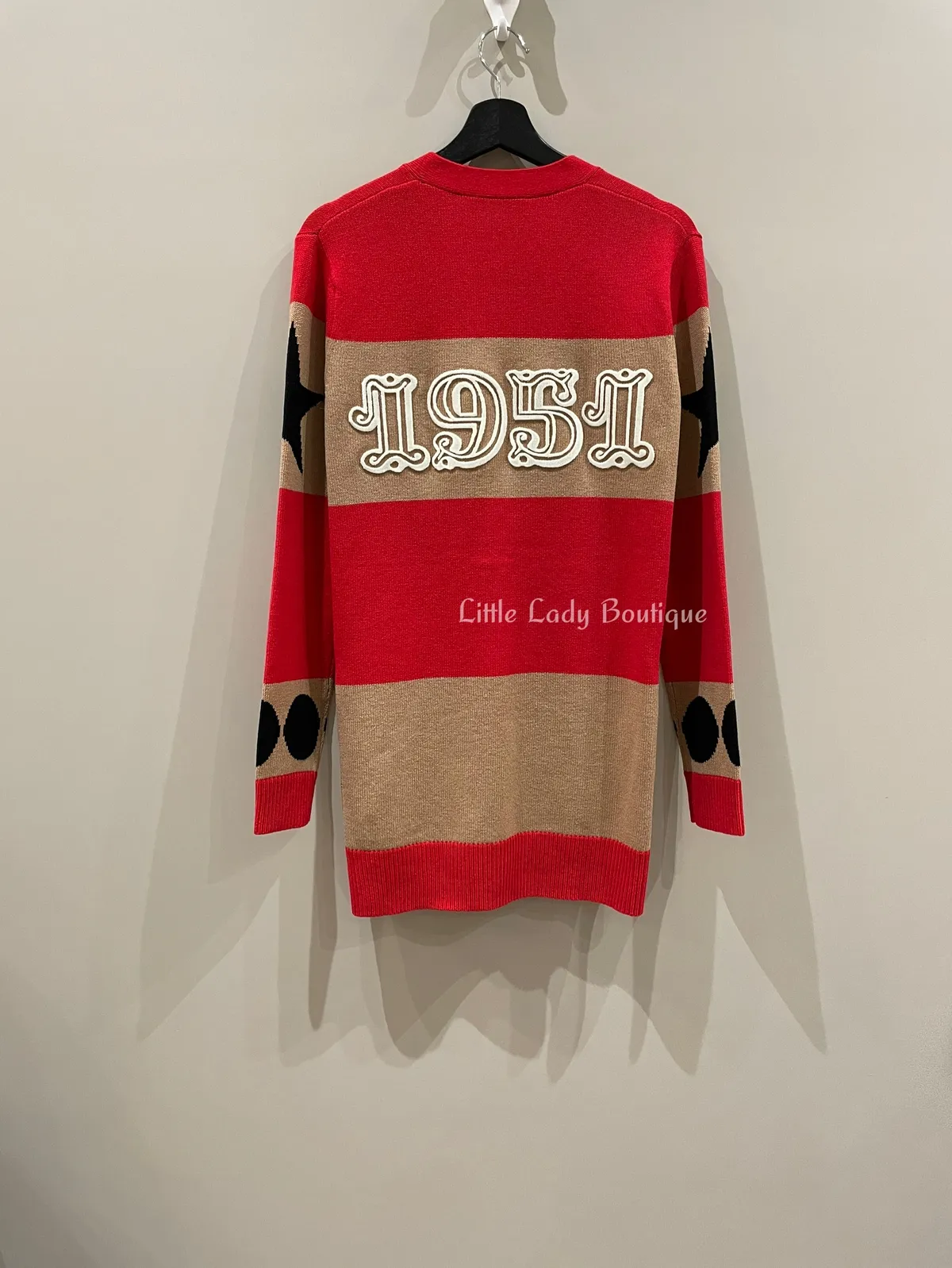 MAXMARA 女士 紅/駝 粗橫條 手臂黑星星 背後1951 雙口袋 針織長袖外套(70