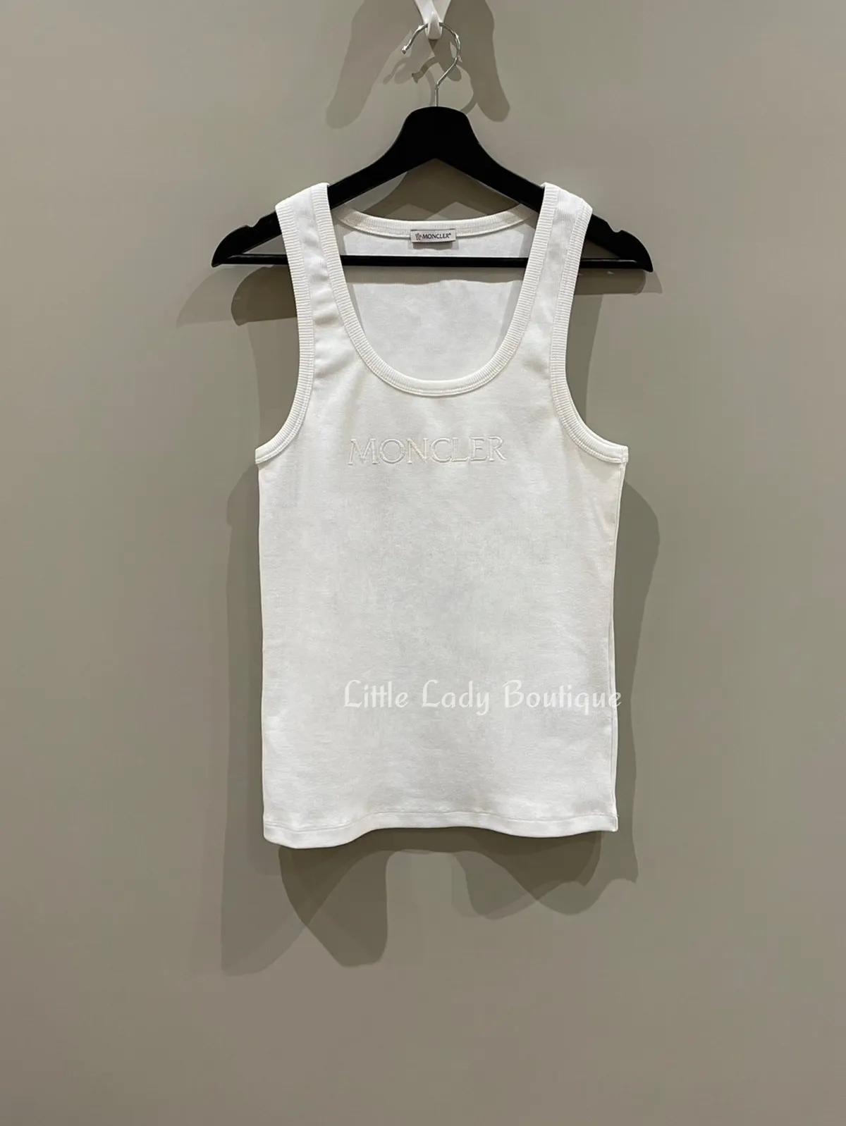 MONCLER 女士 白底 白字 素面直螺紋 無袖背心(98%棉+2%氨綸)