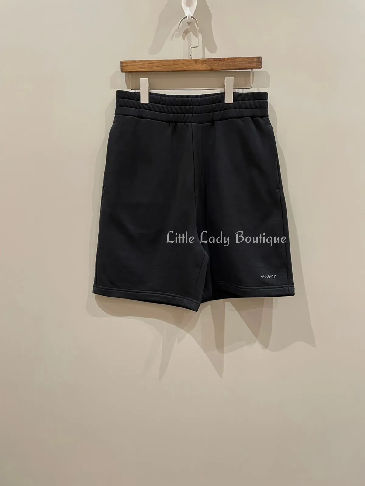 MONCLER 男士 黑底 左腿下白橡膠字 兩側口袋拉鍊 短褲 (100%棉)