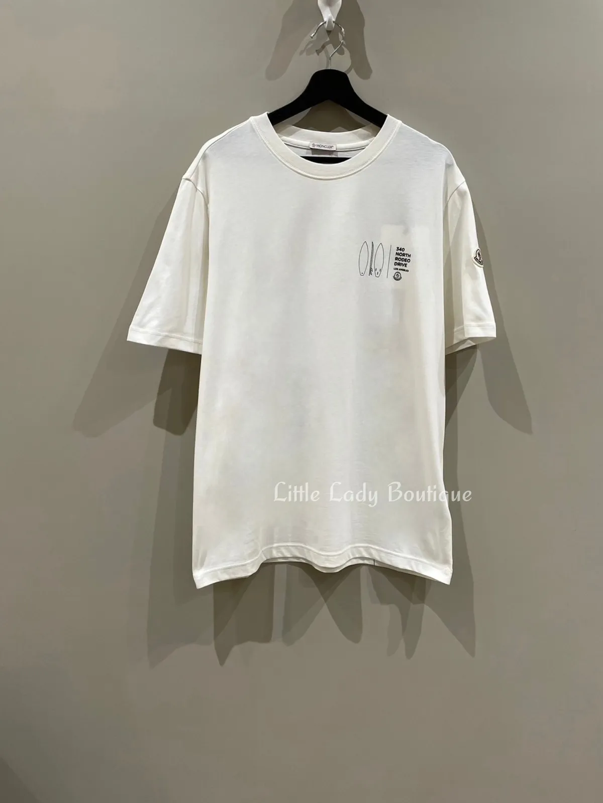 MONCLER 男士 白底 左胸及背後黑衝浪板圖案 短袖上衣 (100%棉)