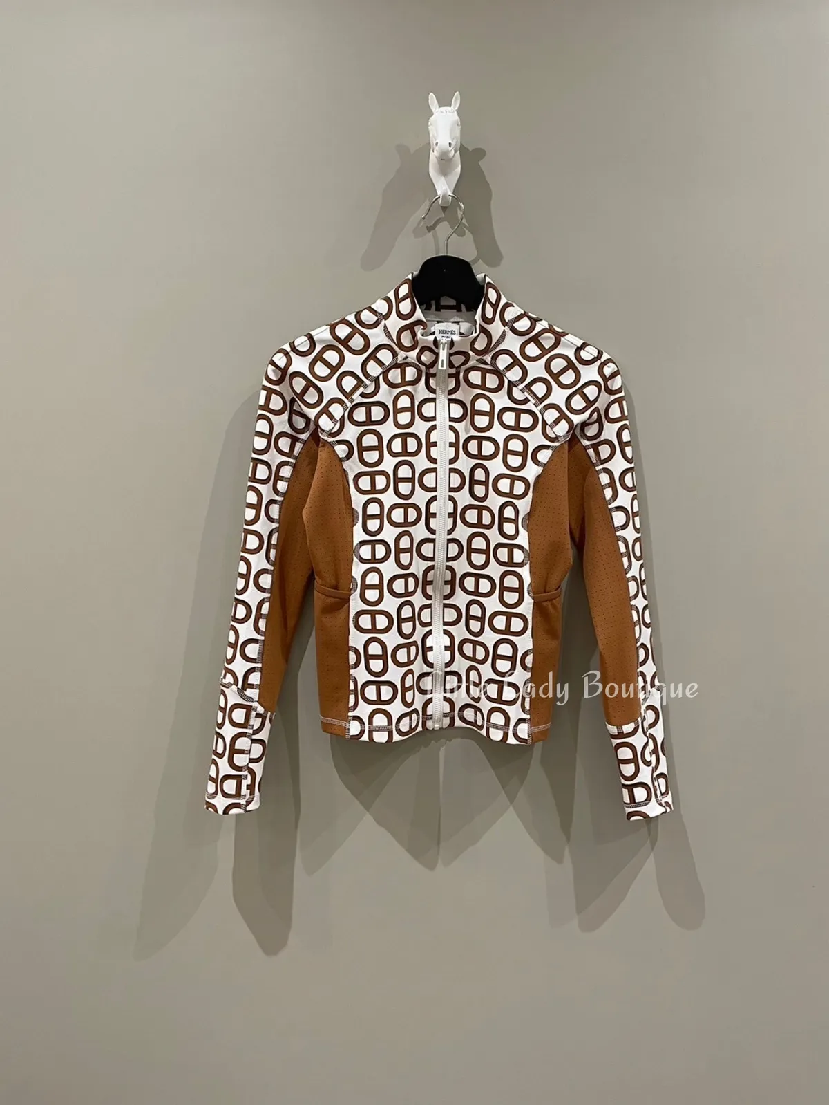 HERMES 女士 白底駝豬鼻圖案 合身運動外套