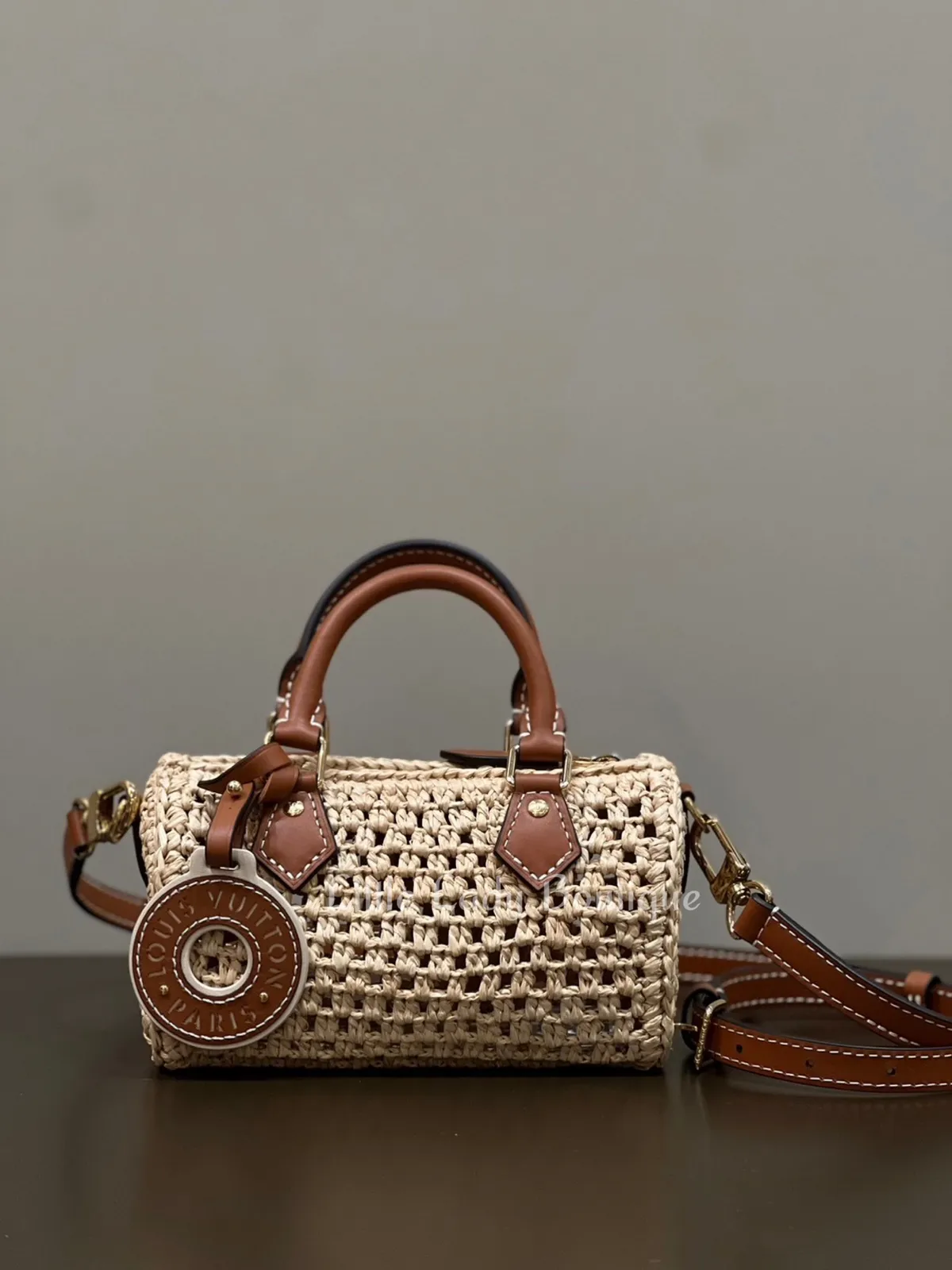 LV NANO SPEEDY 拉菲草編 波士頓 肩背手提包 (16 x 10 x 7.5