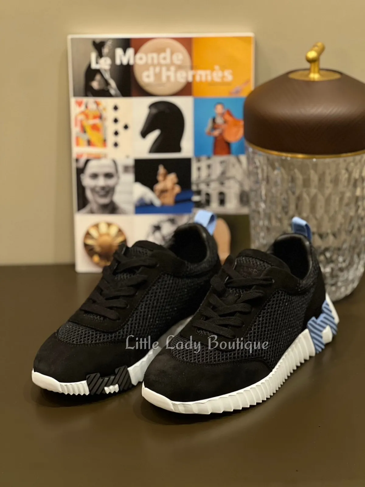 HERMES 女士 Bouncing 黑色 網眼布面 底黑&淺藍H 運動鞋