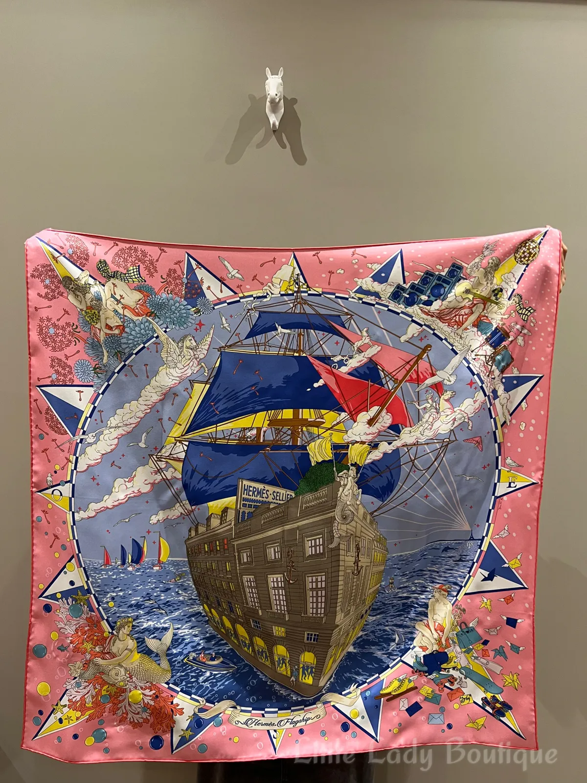 HERMES 90*90 絲巾 福寶郵輪 (玫瑰糖果 / 藍色 / 多色)