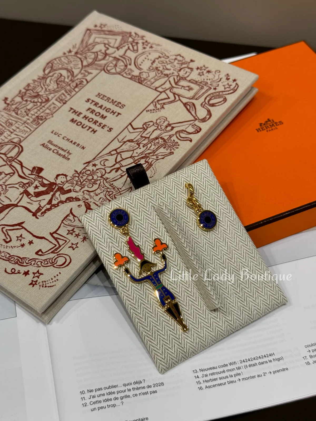 HERMES Artificier 金色 煙火騎士造型 彩色法瑯 不對稱 垂吊耳環 (左7