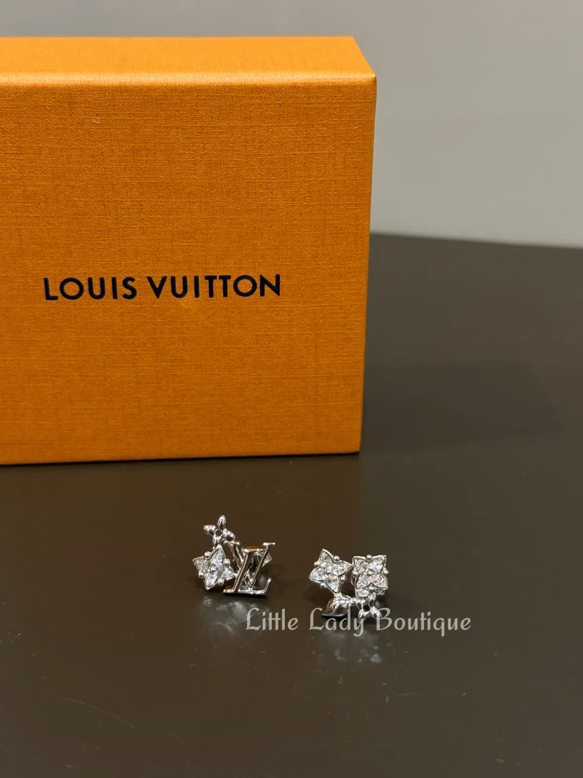 LV Loulougram 銀色 LV字及 LV花卉 水晶 不對稱 貼耳針式耳環