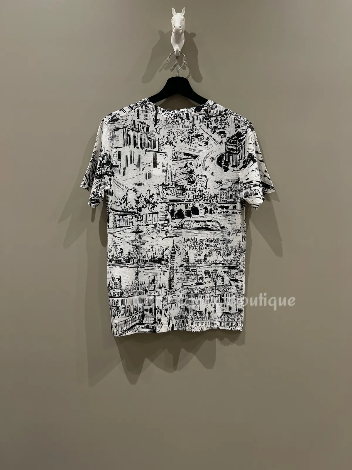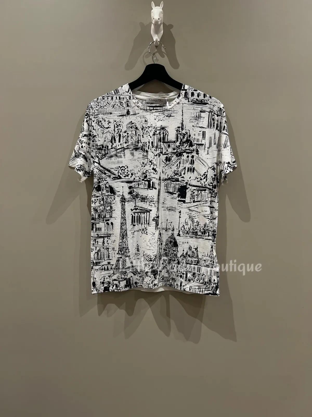 DIOR 女士 白底 法國巴黎街景 短袖上衣