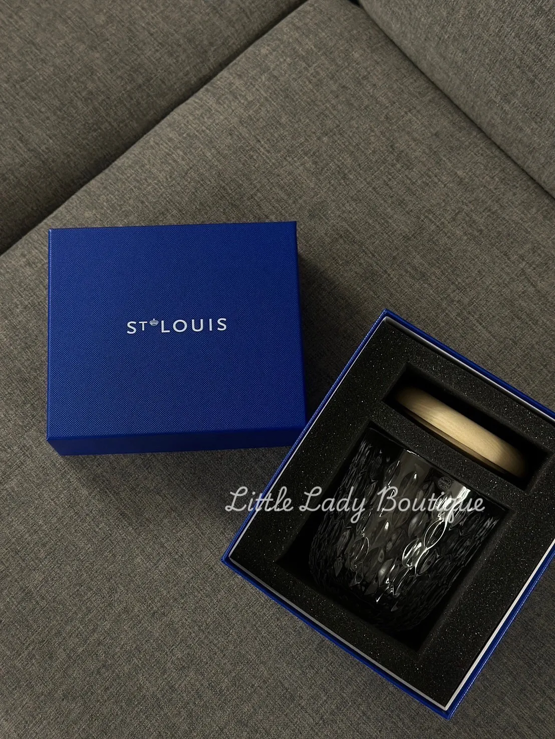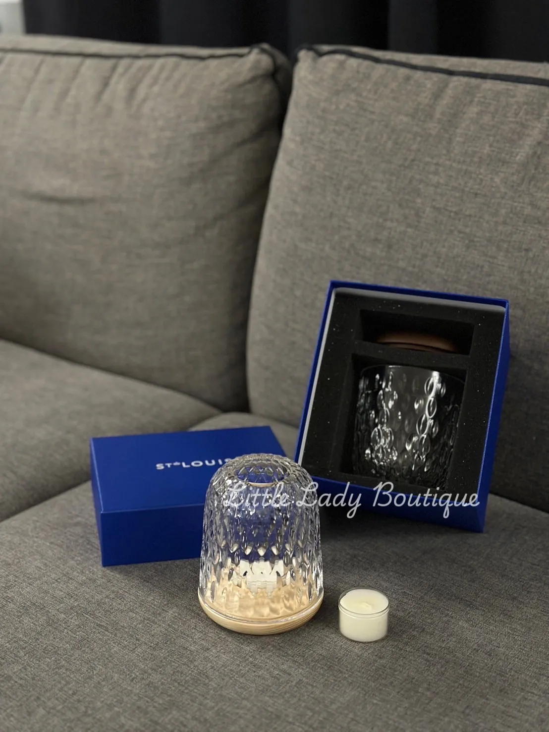 小號 HERMES SAINT-LOUIS FOLIA 淺木紋色 透明水晶 蠟燭架 (高1