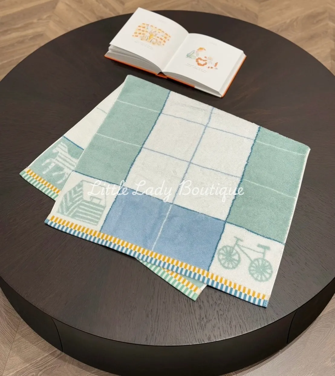 HERMES Les Cabanes 霜藍色/瓷綠色 格子&4邊圖案中間空白 長型