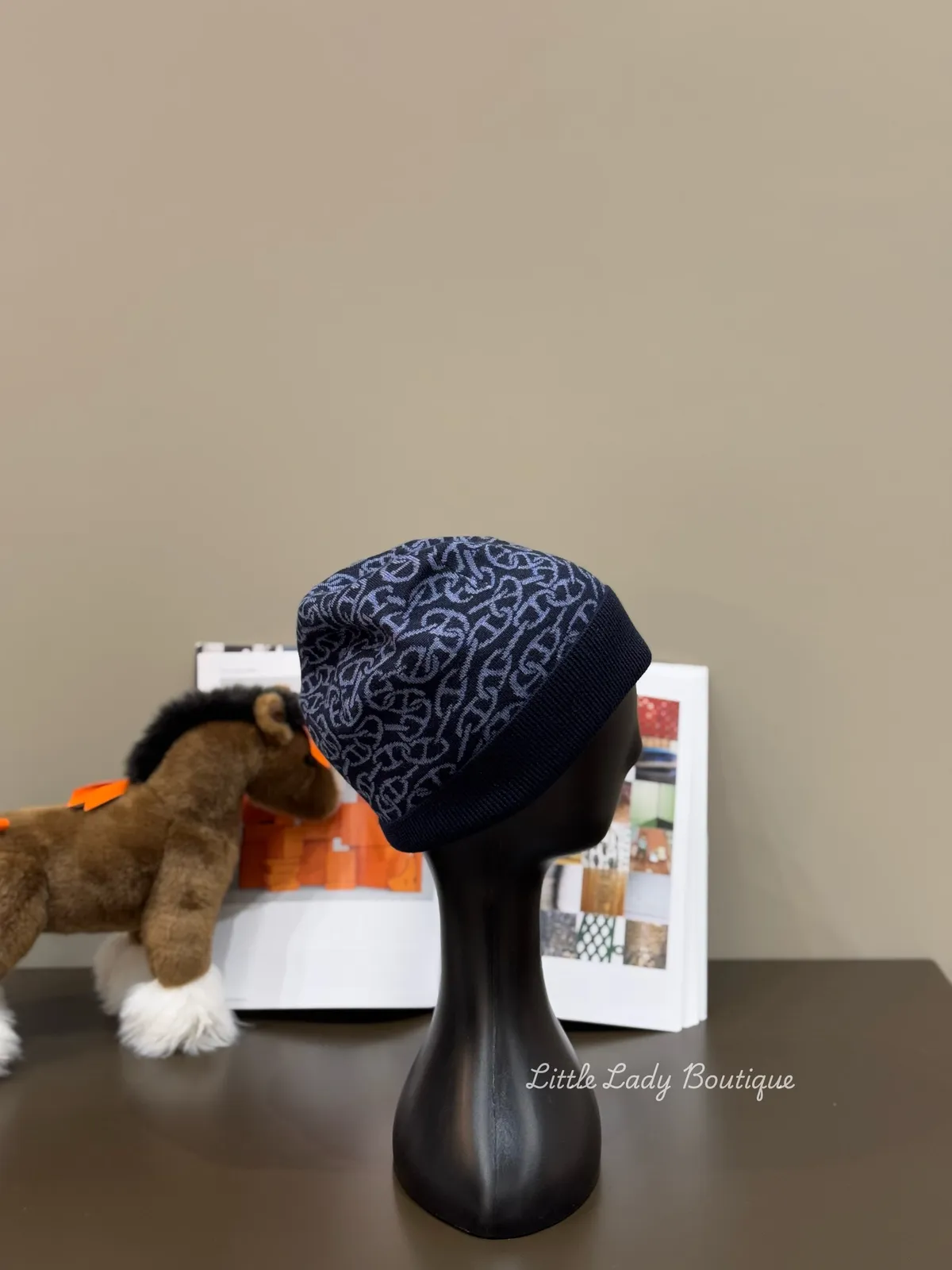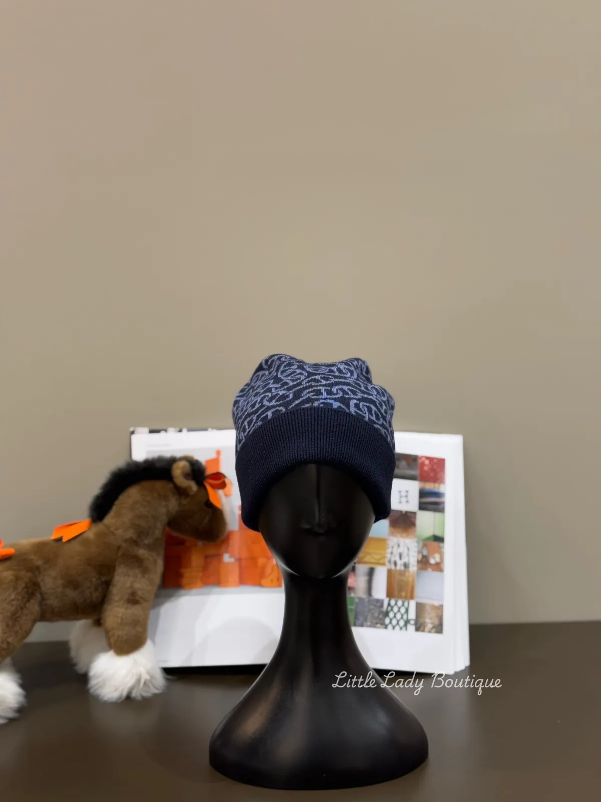 HERMES 女士 Julia Naoussa 海軍藍底 滿版豬鼻 絲+緹花CASHMER