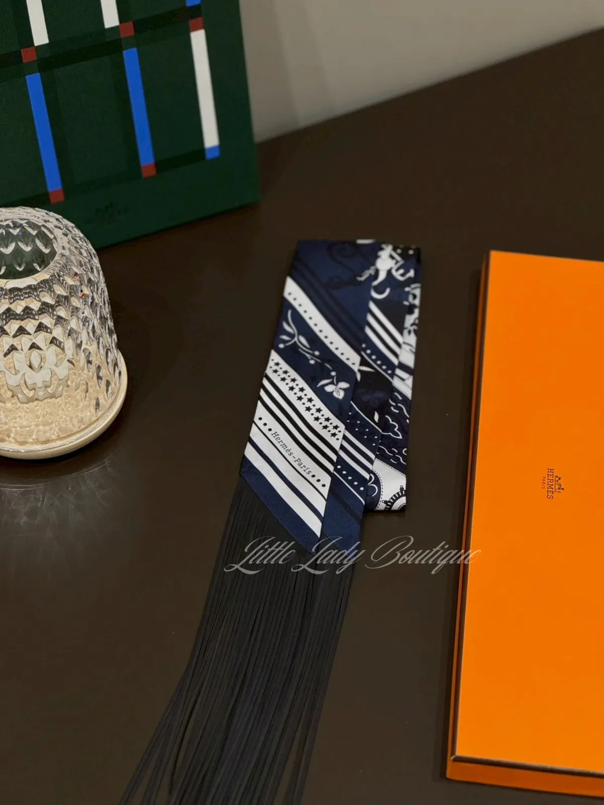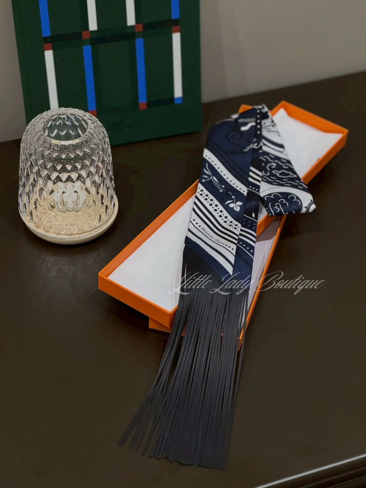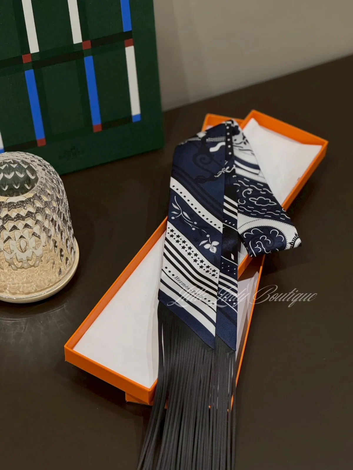 HERMES TWILLY 流蘇 - 特威利亞馬遜頭巾節 (藍黑色/白色/黑色)
