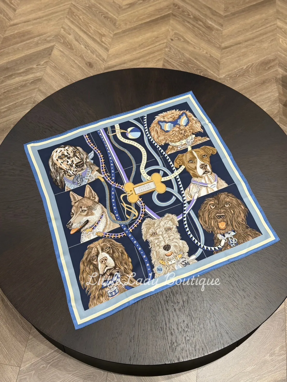 HERMES 70*70 絲巾 狗狗選角日 (牛仔藍/黑藍色/棕色)