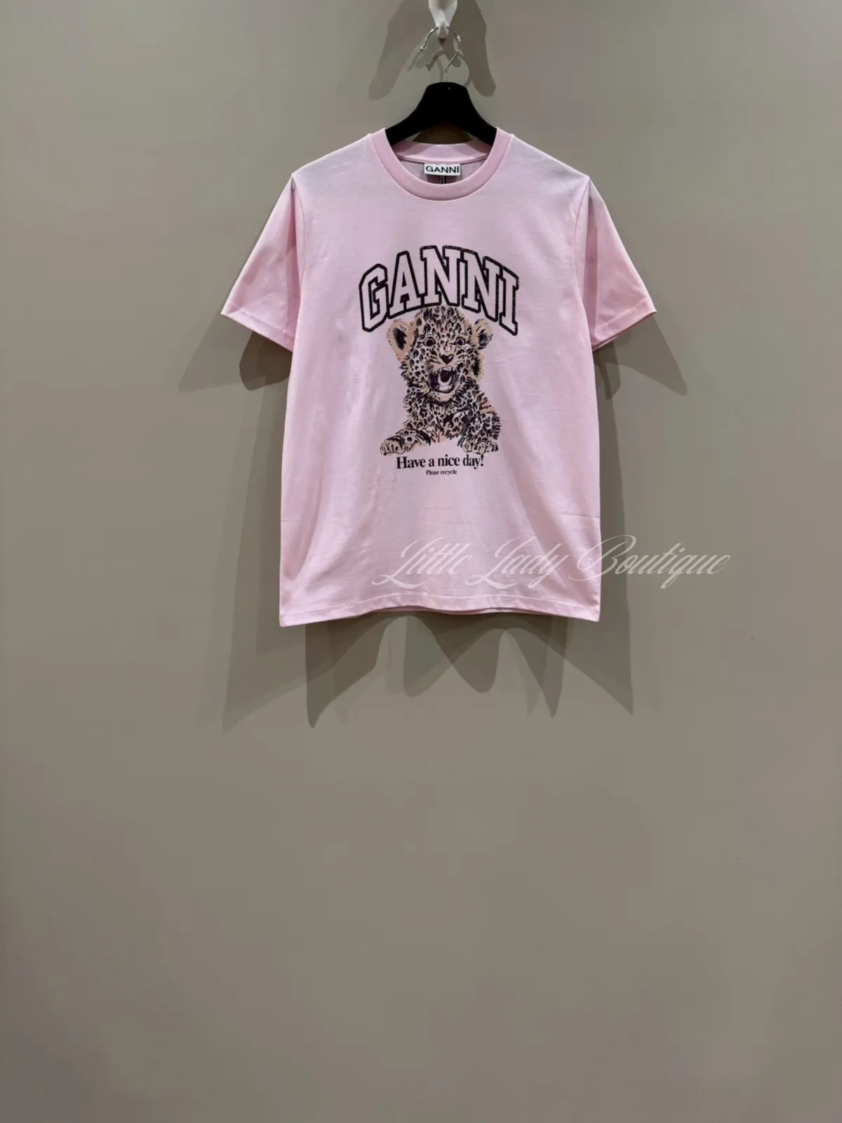 GANNI 女士 粉底 花豹圖案 短袖上衣