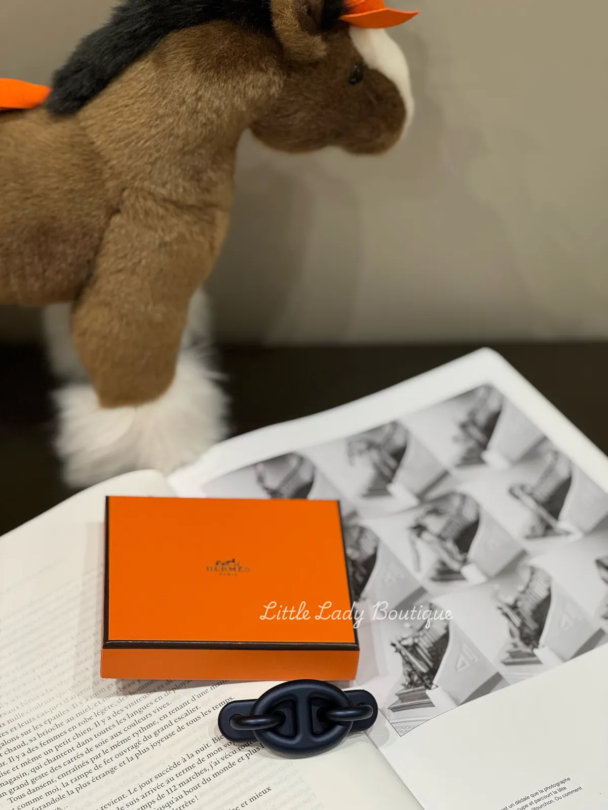 HERMES Tri Maillon PM 小號 深藍色 單豬鼻 髮夾(寬3.2/長7CM