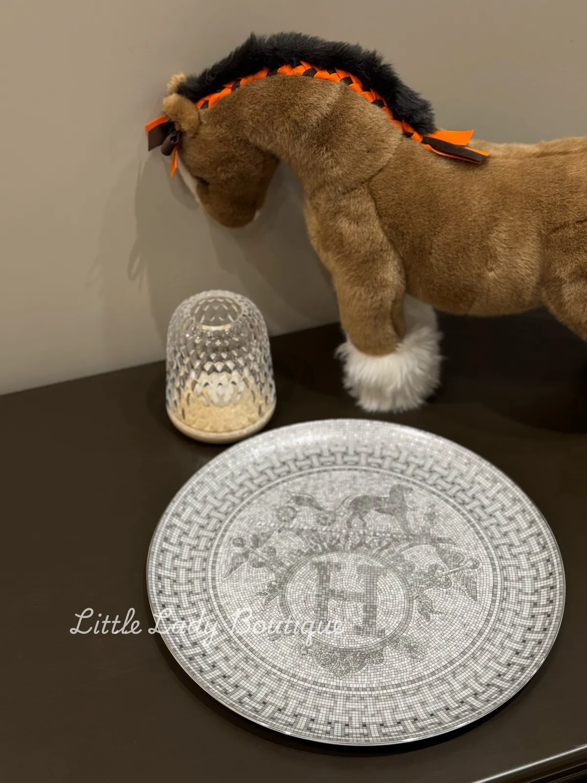 HERMES 馬賽克24 銀色 糕點派盤 (中間大馬車圖案)(直徑32 cm)