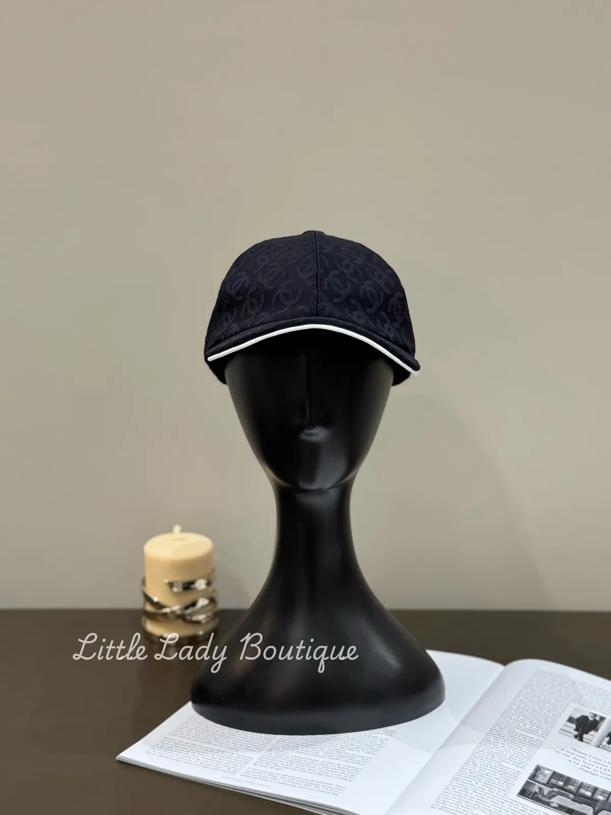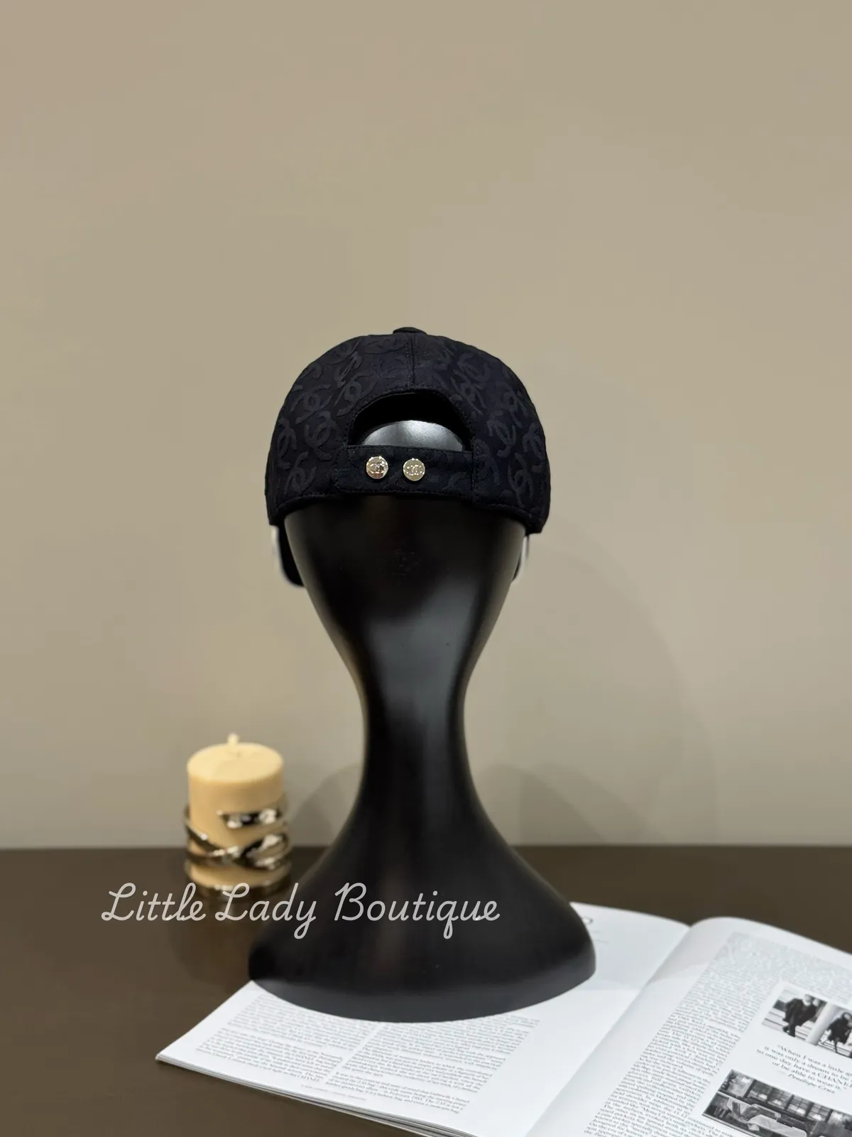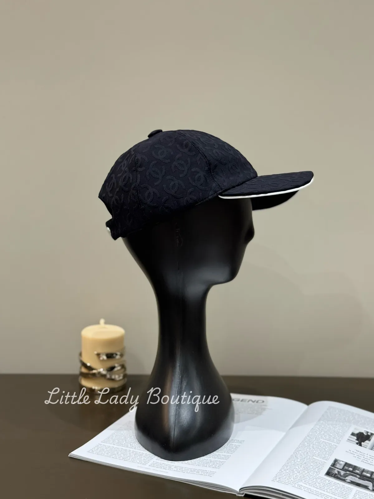 F號 CHANEL 黑色 滿版雙C刺繡 鴨舌帽 (後有2調節釦)