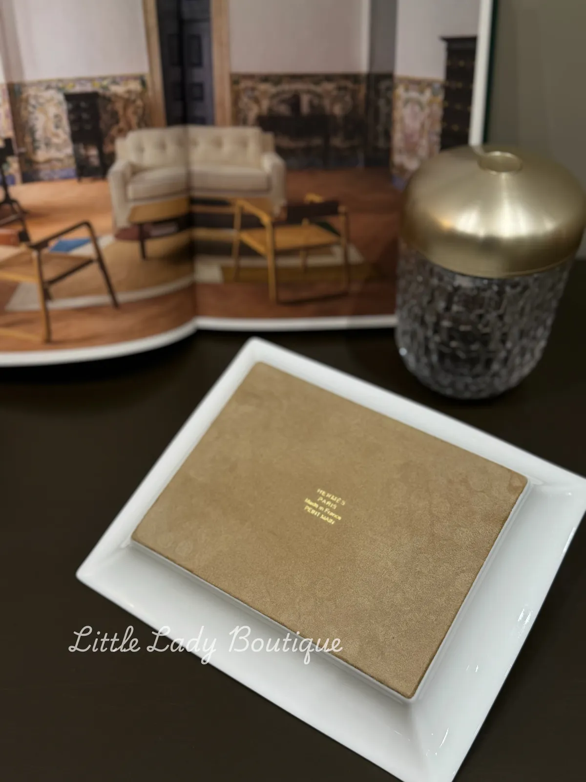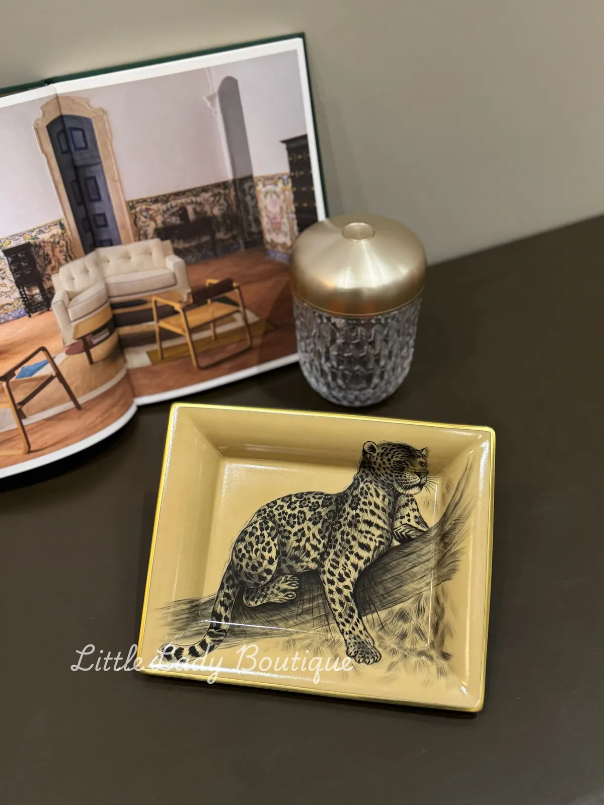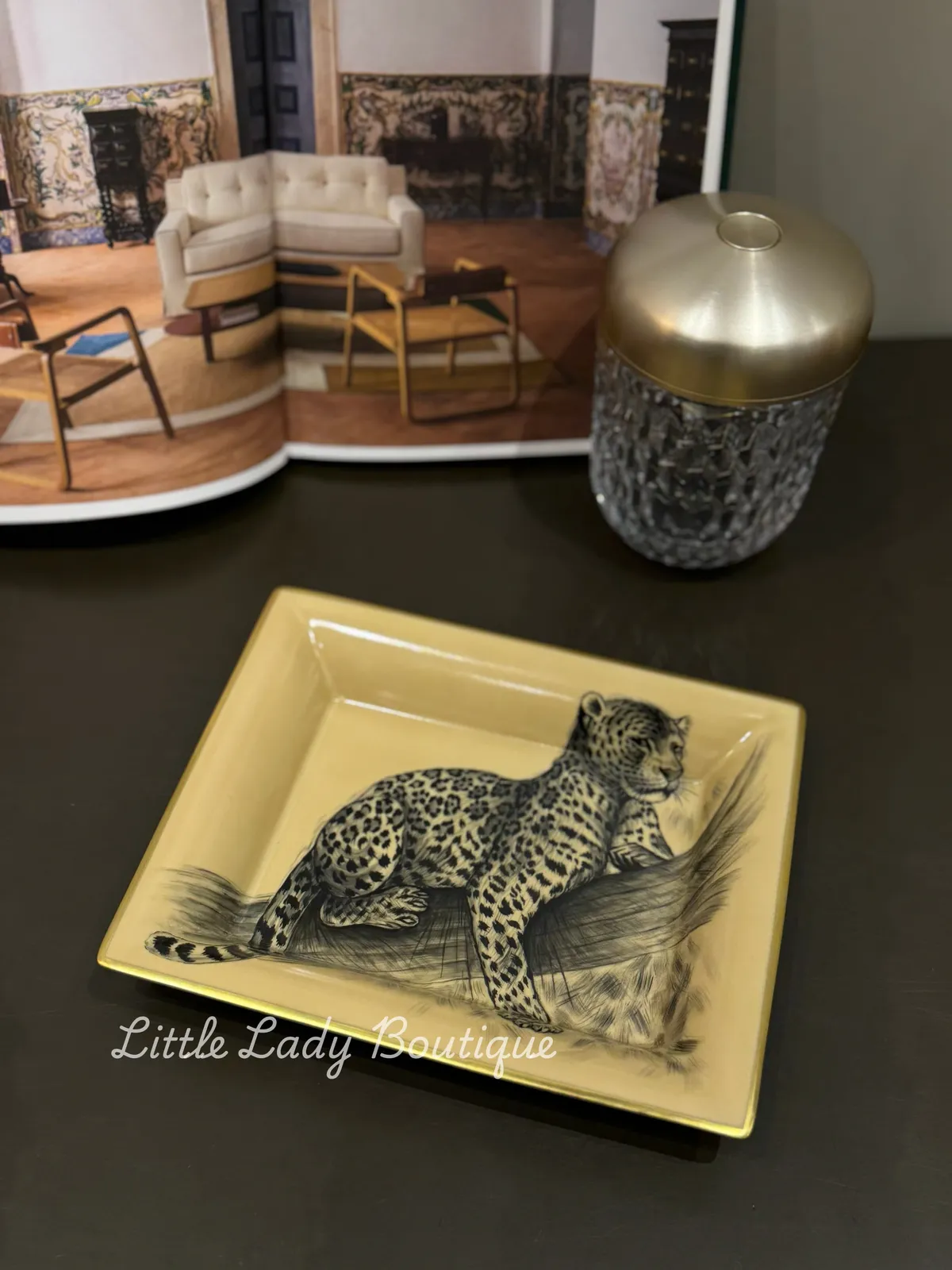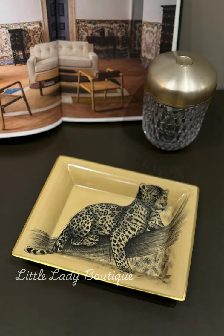 HERMES LE FELIN 貓科動物 手繪花豹 金邊 瓷器置物TRAY (21x17C