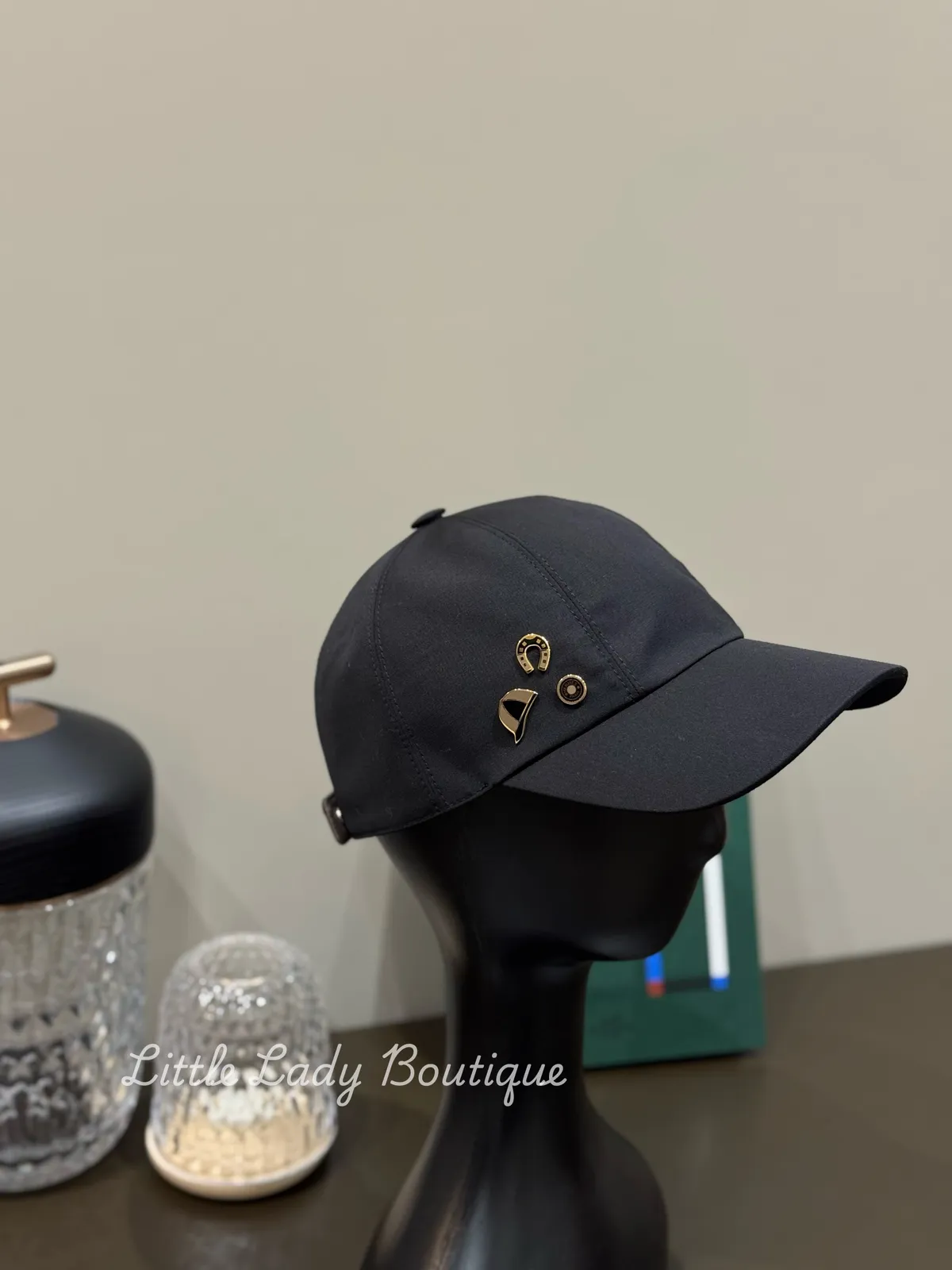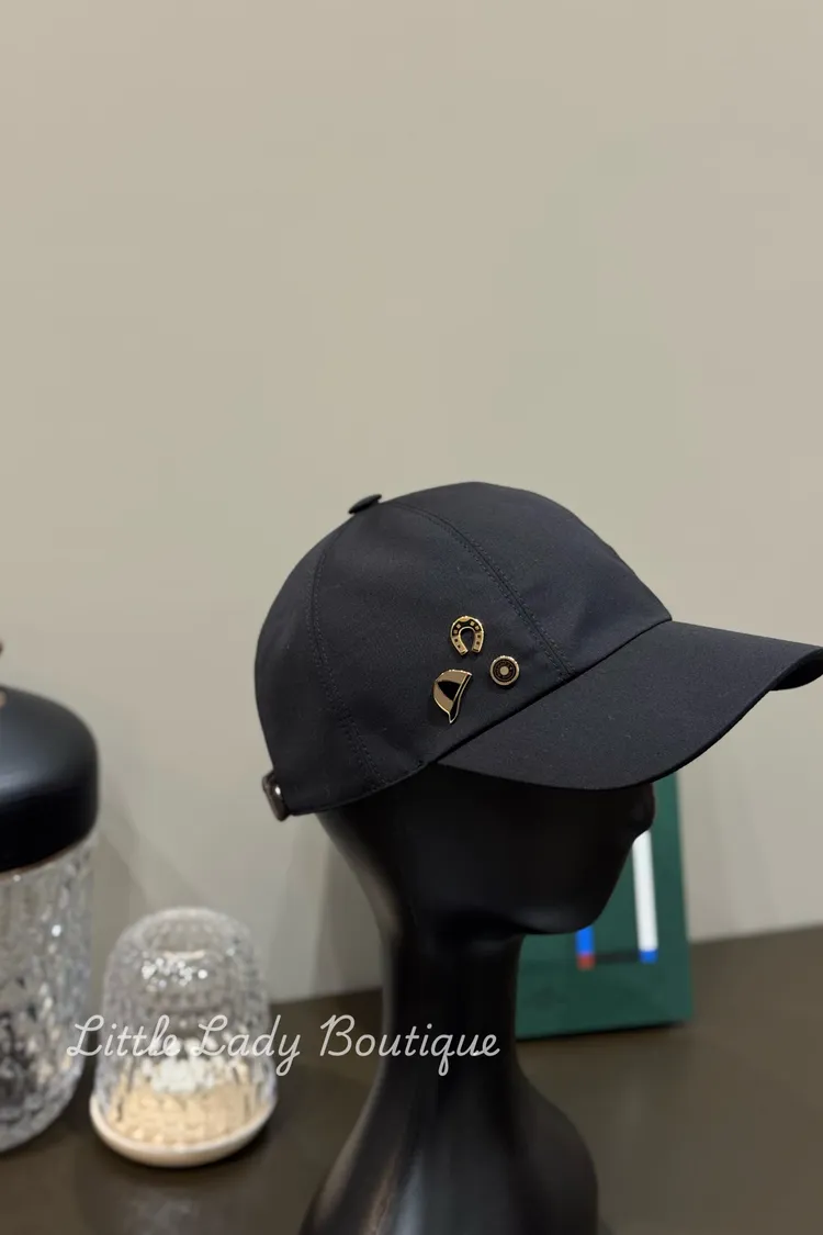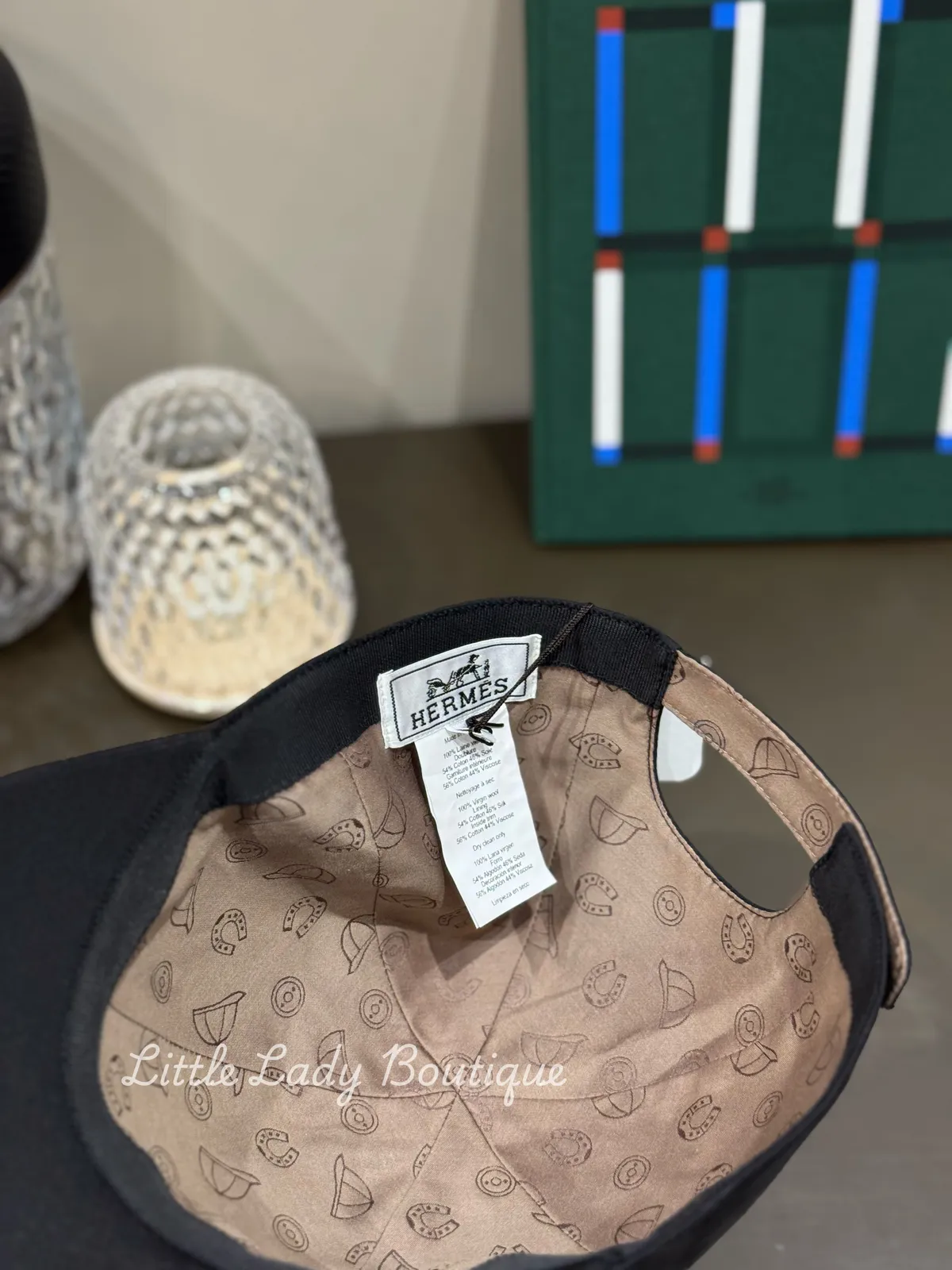 HERMES 女士 Serena Jump 黑底 側邊3馬鞍釘釦(馬蹄.馬術帽) 休閒帽(