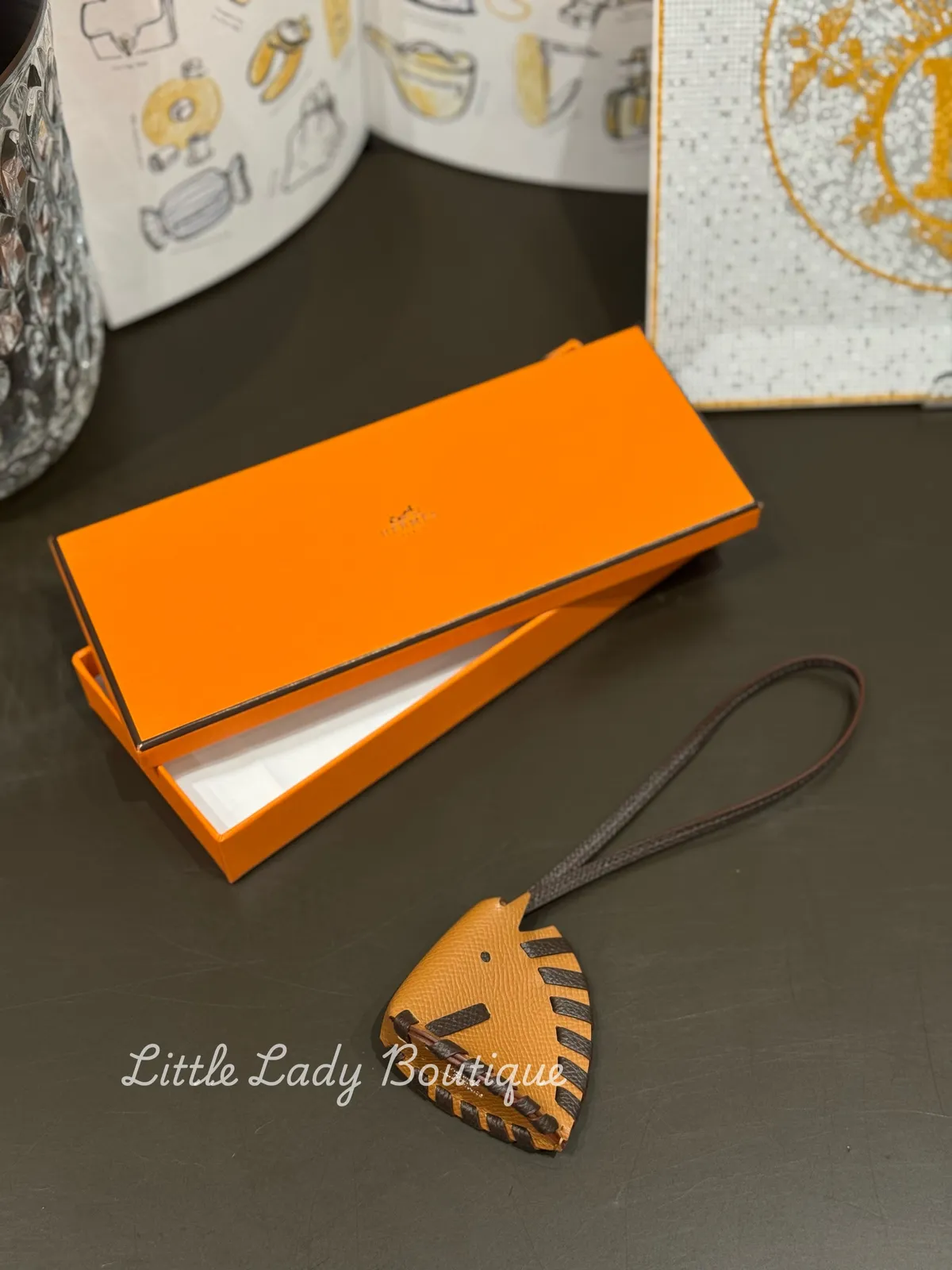 HERMES Cheval Tresse 馬頭造型 吊飾 (37駝GOLD/ 47巧克力C