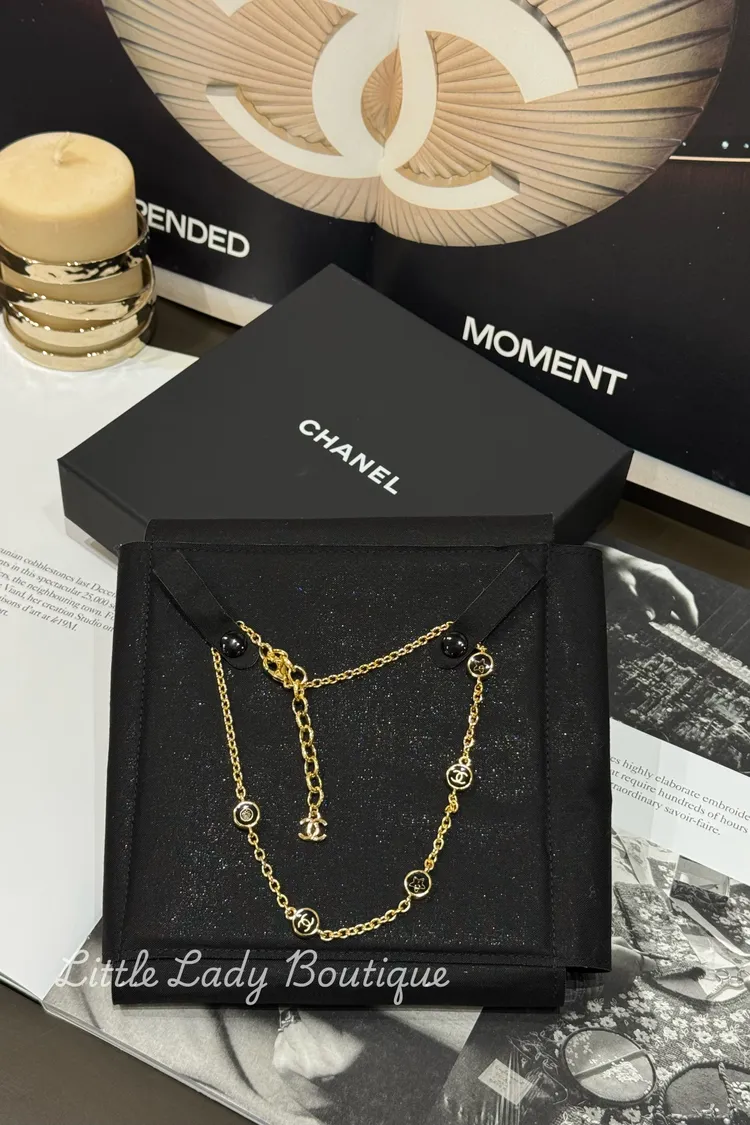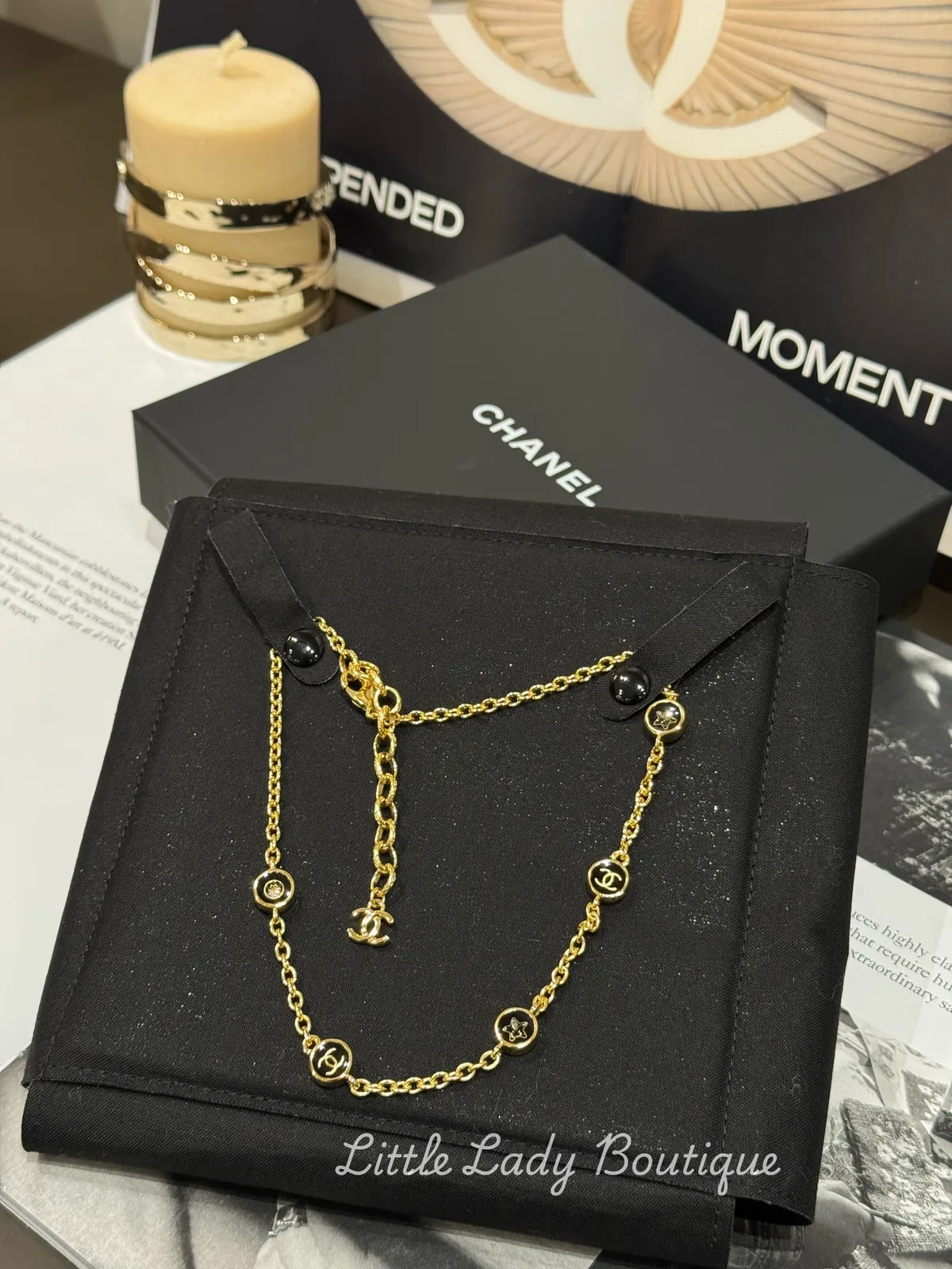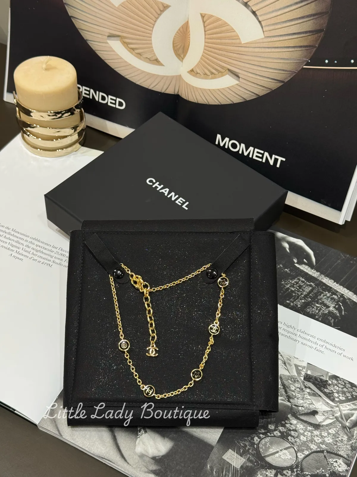 CHANEL 金色 黑底圓圈(雙C,星星,水晶) 短項鍊(可調長度)