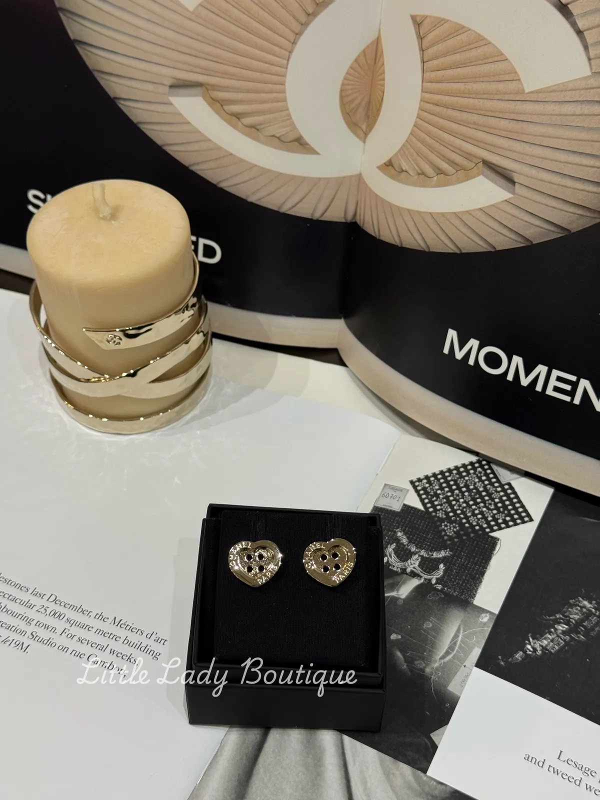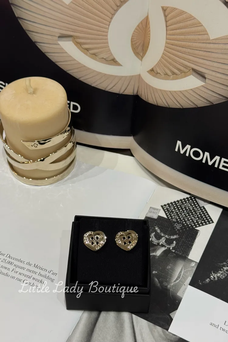 CHANEL 淡金色 愛心鈕扣4洞洞造型 貼耳針式耳環 (約1.8*1.7CM)