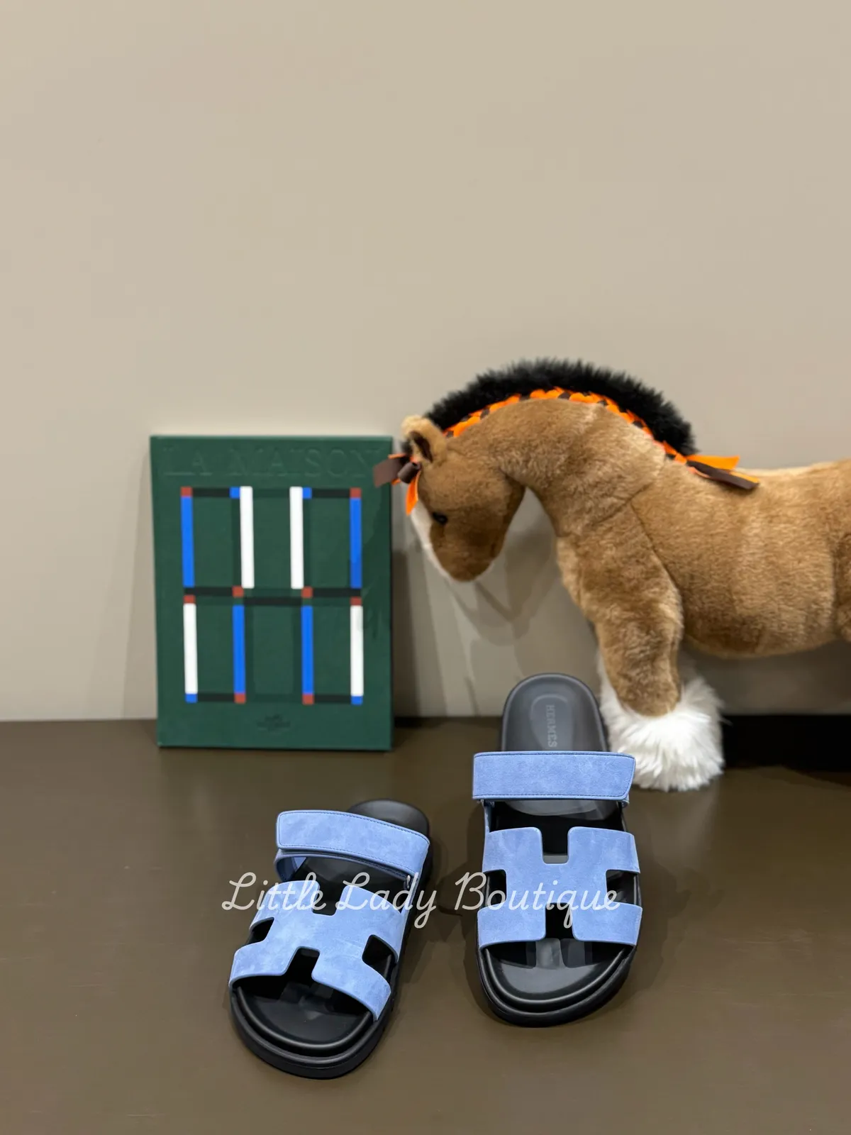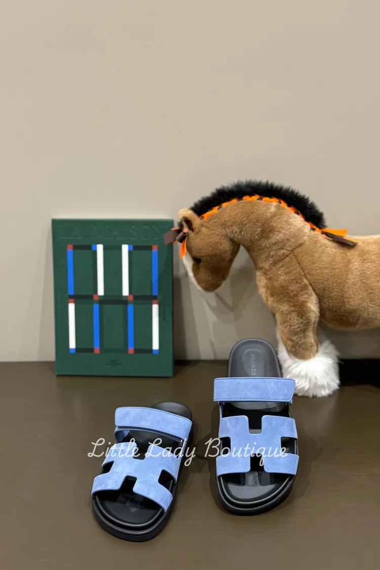 HERMES 女士 CHYPRE 牛仔藍 山羊麂皮 二舅鞋
