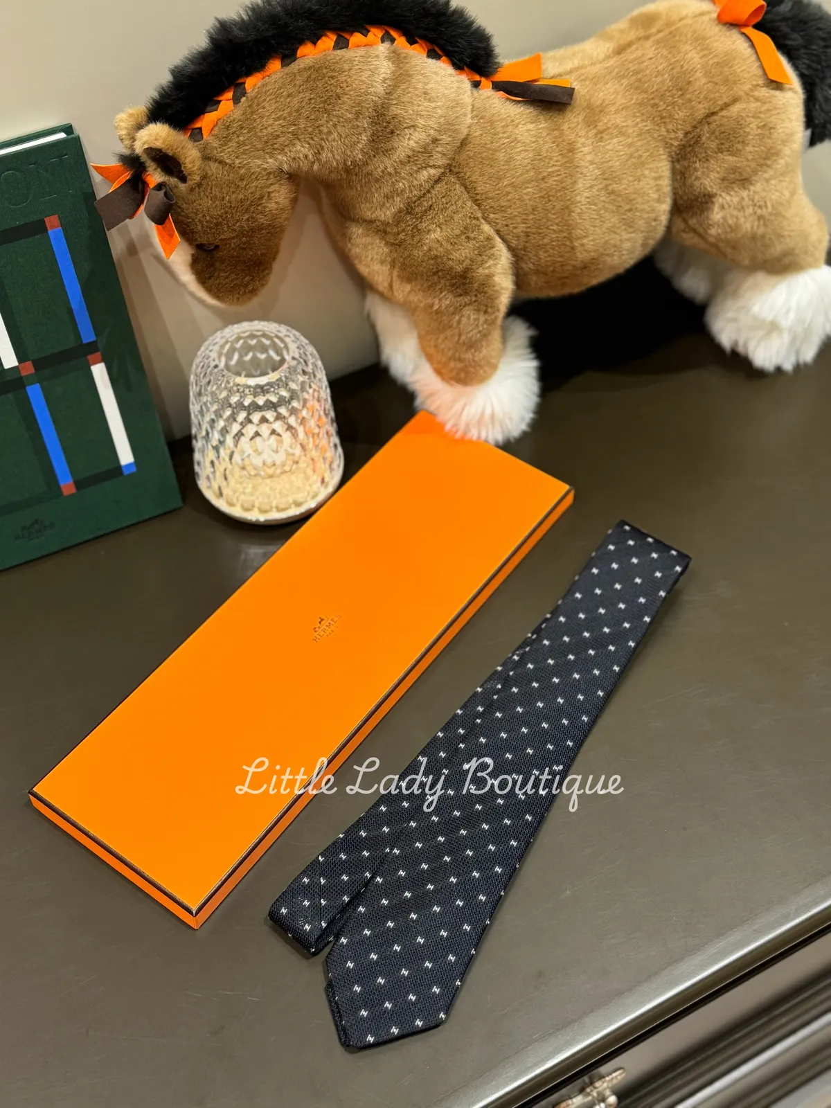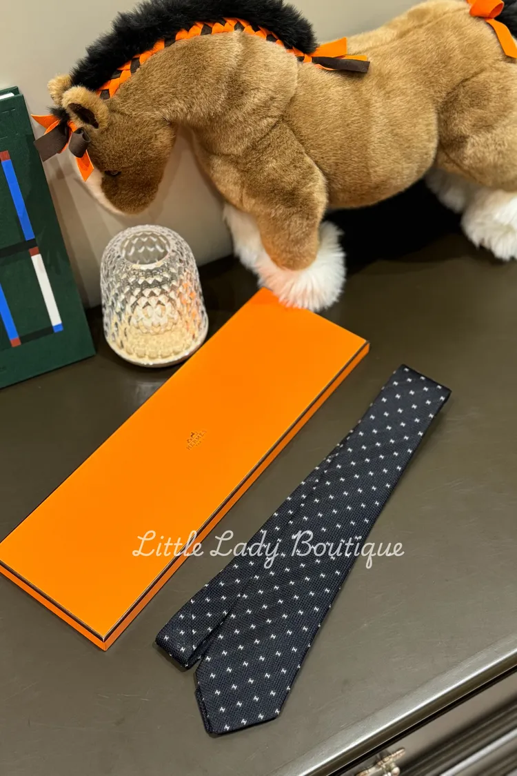 HERMES 絲質緹花 7CM寬 領帶 (黑色/灰色/白色 滿版H)