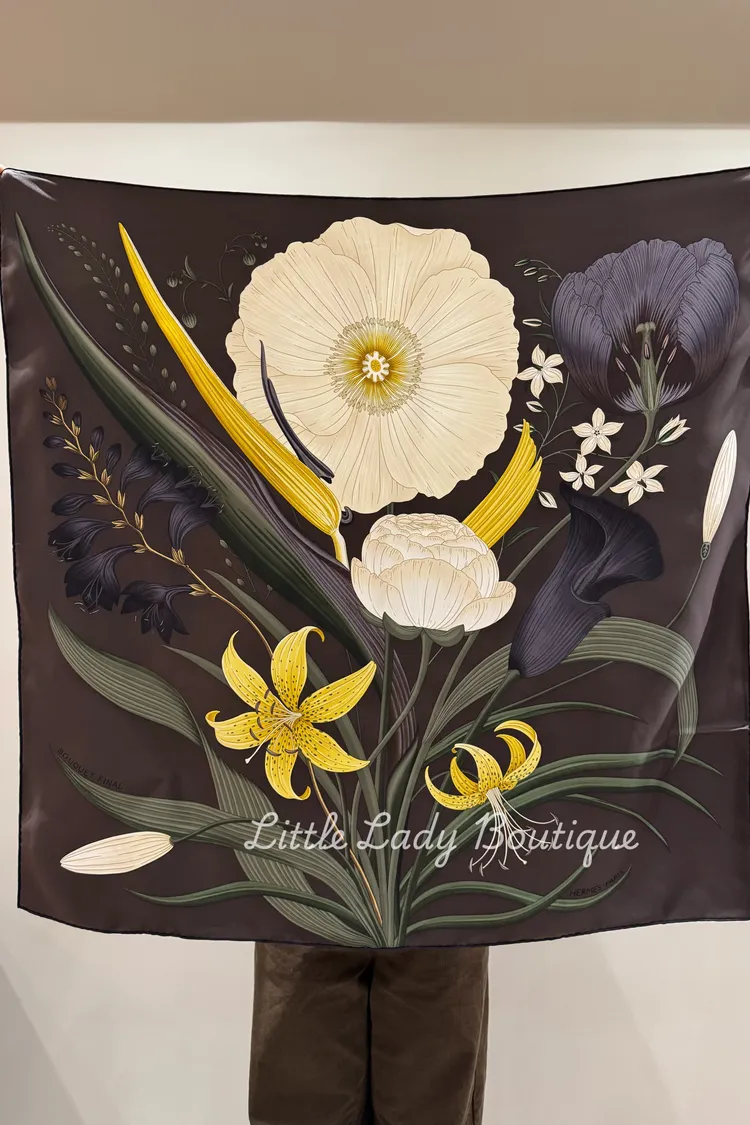 HERMES 90*90 絲巾 花束終章 (烏木色 / 沙色 / 綠色) 鬱金香.勿忘我.