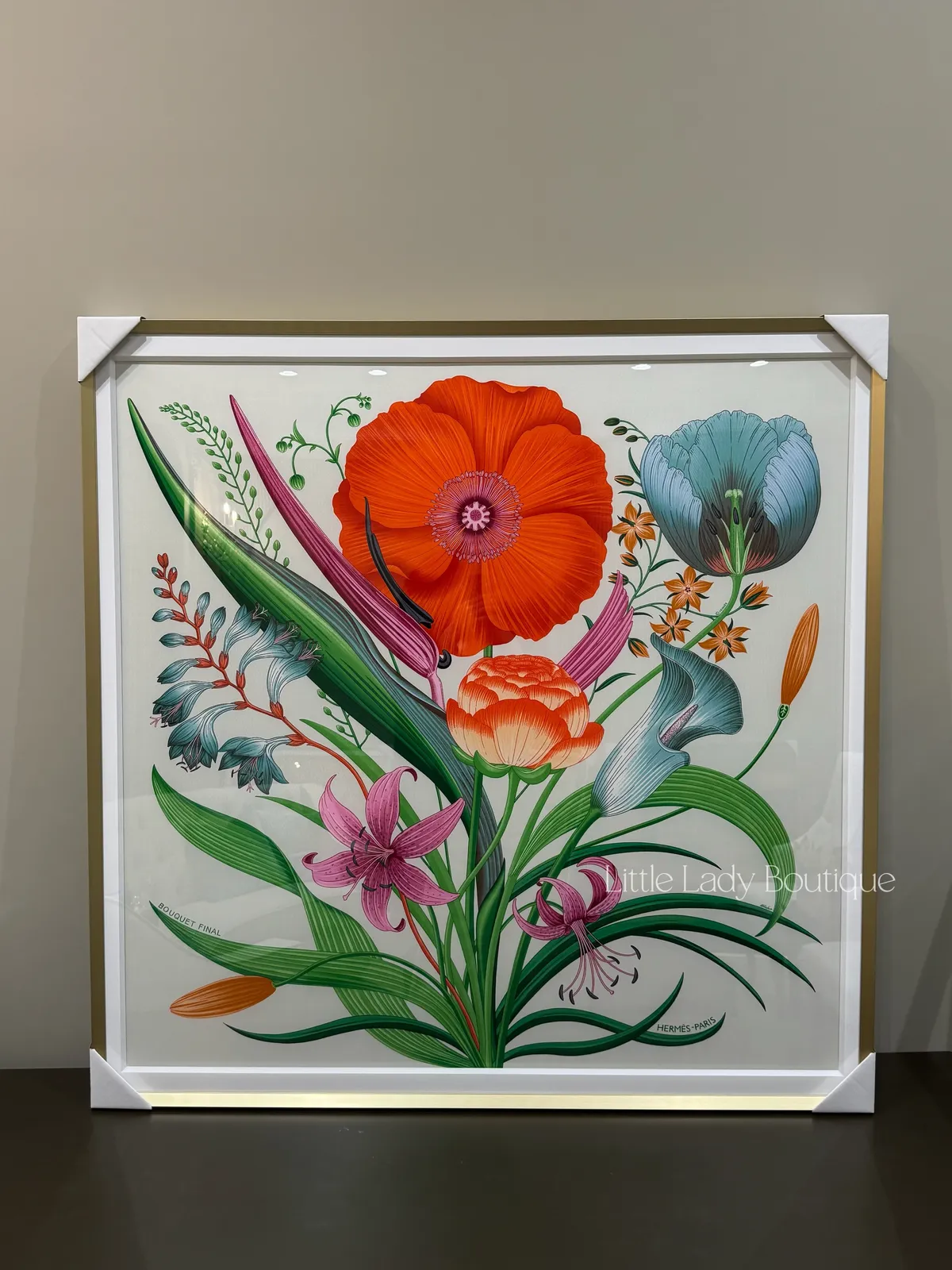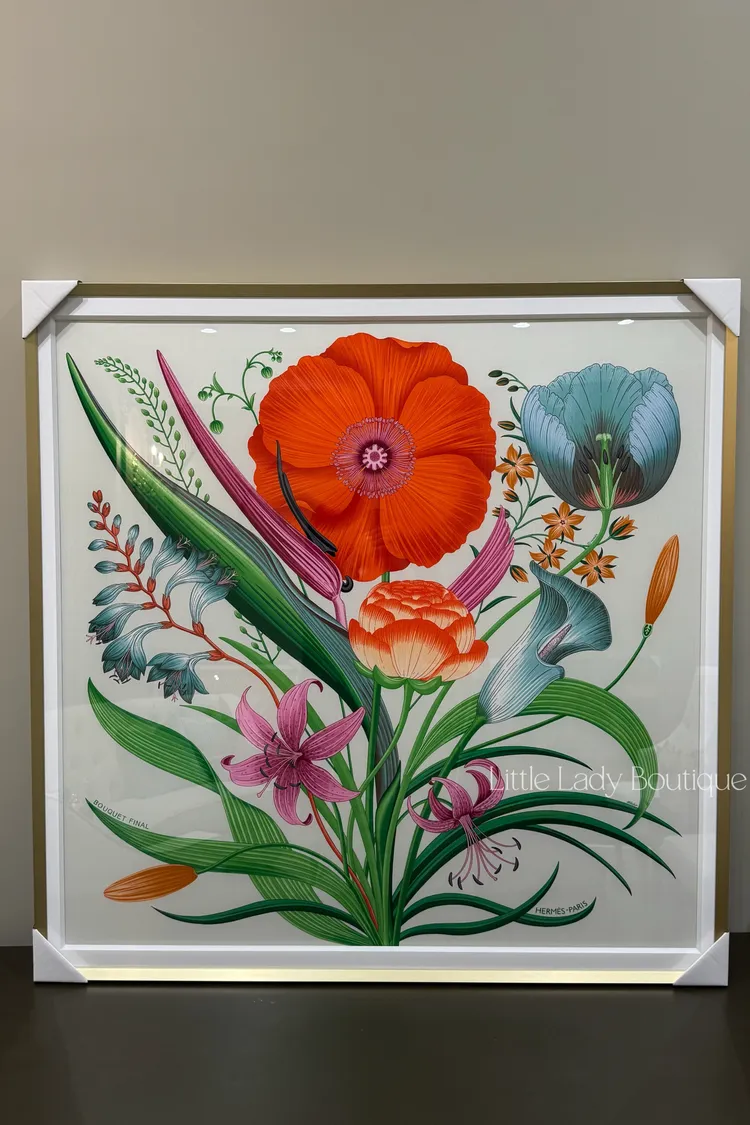 (含框)HERMES 90*90 絲巾 花束終章 (白卡塞 / 朱紅 / 綠) 鬱金香.勿