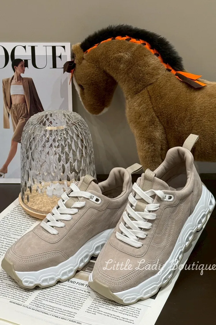 HERMES 女士 Impulse 游牧民族米色 全麂皮山羊皮 豬鼻底圈 運動鞋