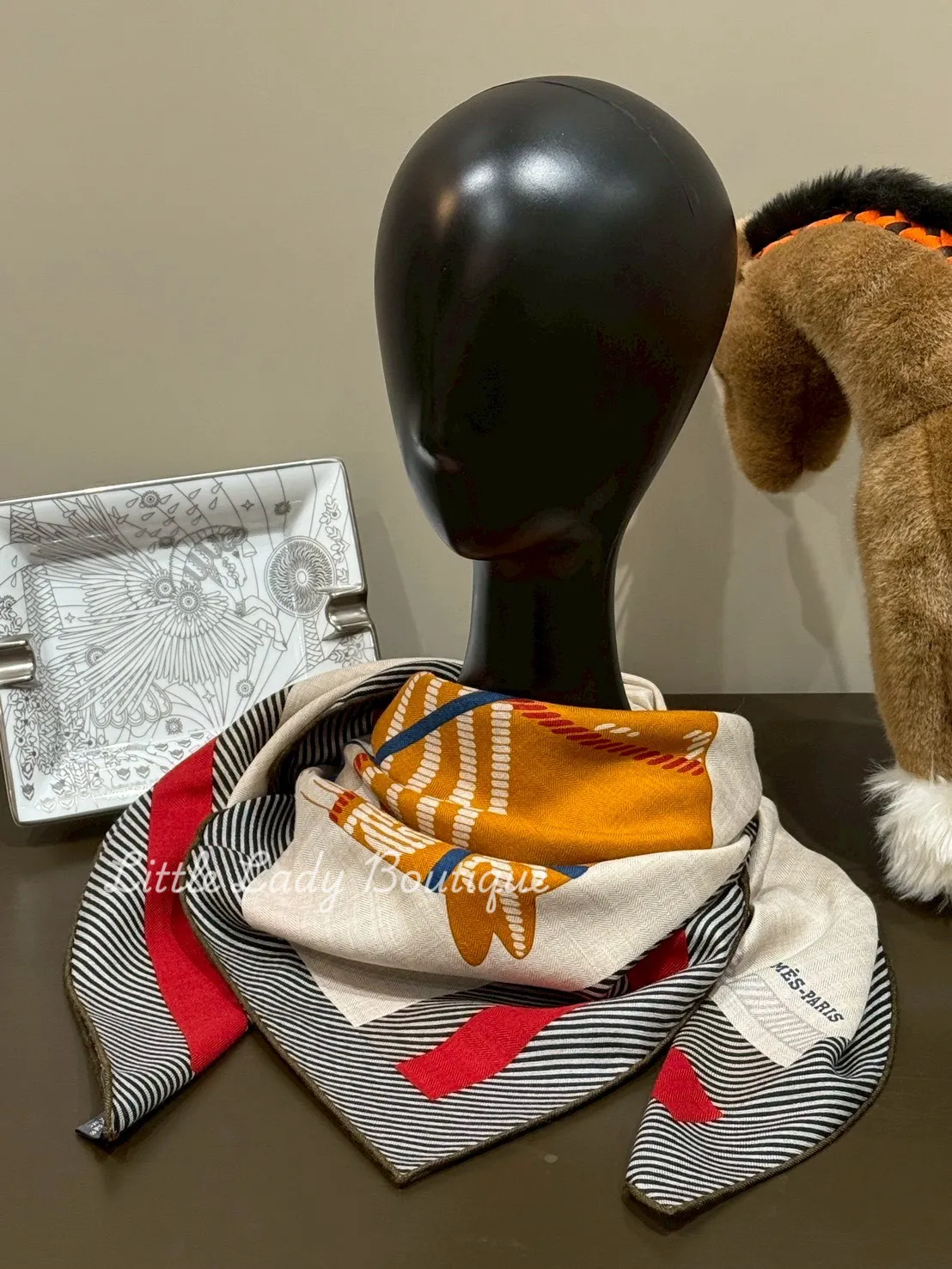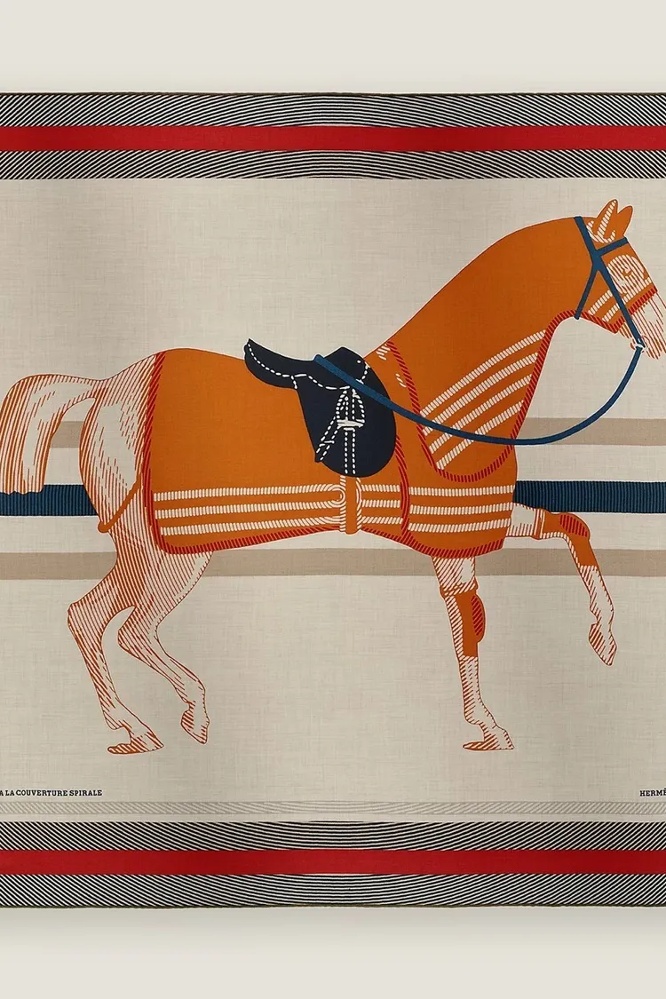 HERMES 100*100 駿馬的馬披毯和馬頭罩(米色/橘色/紅色)(70%羊絨,30%