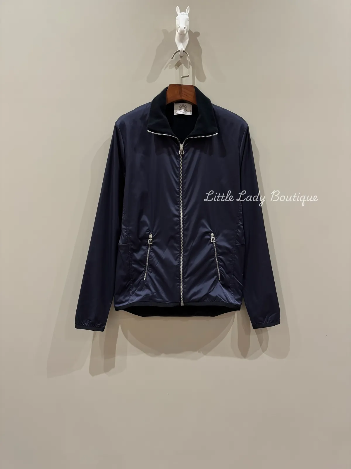 HERMES 女士 海軍藍 Warm-Up 高領 內絨毛 防水保暖夾克