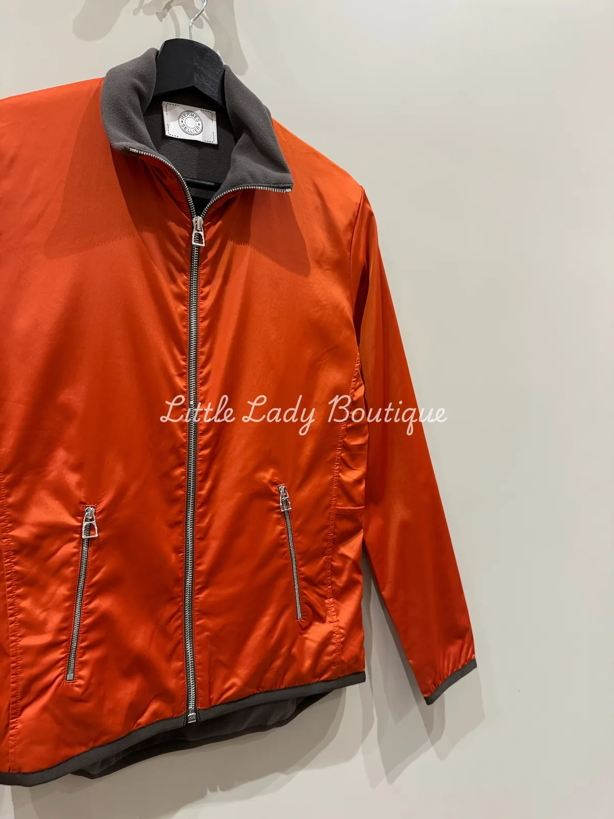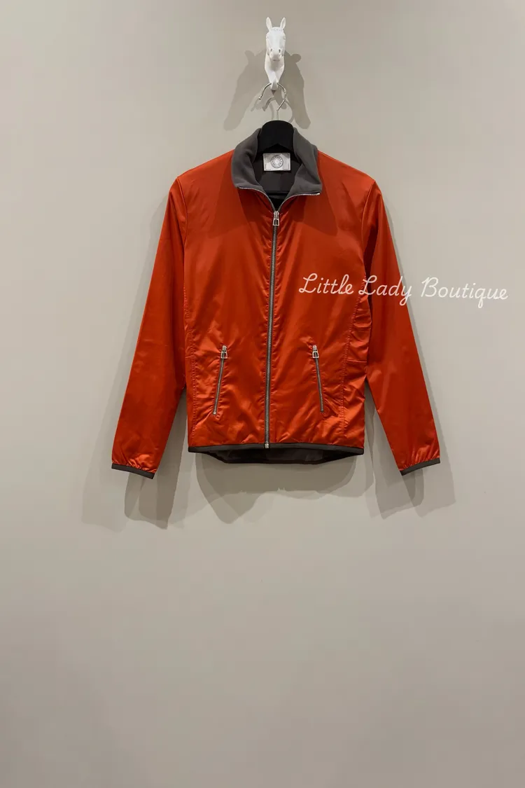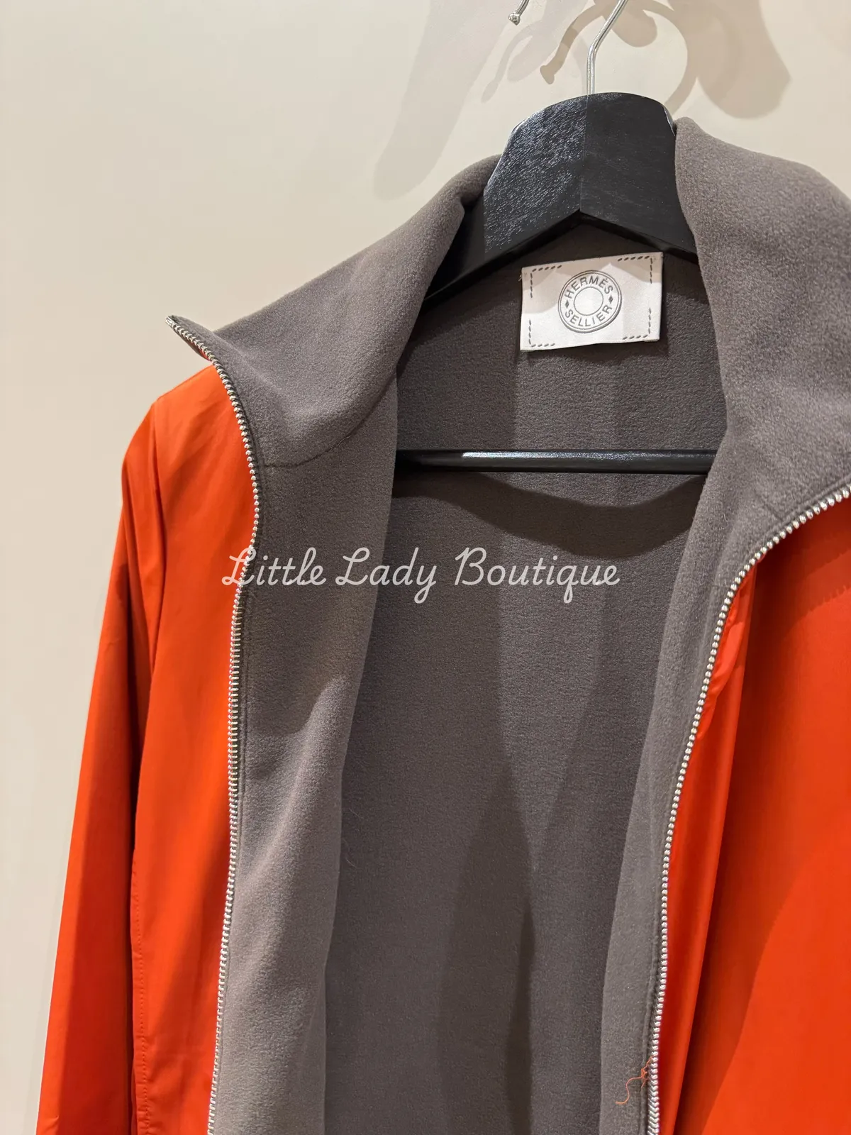 HERMES 女士 火橘色 / 鉛灰色 Warm-Up 高領 內絨毛 防水保暖夾克