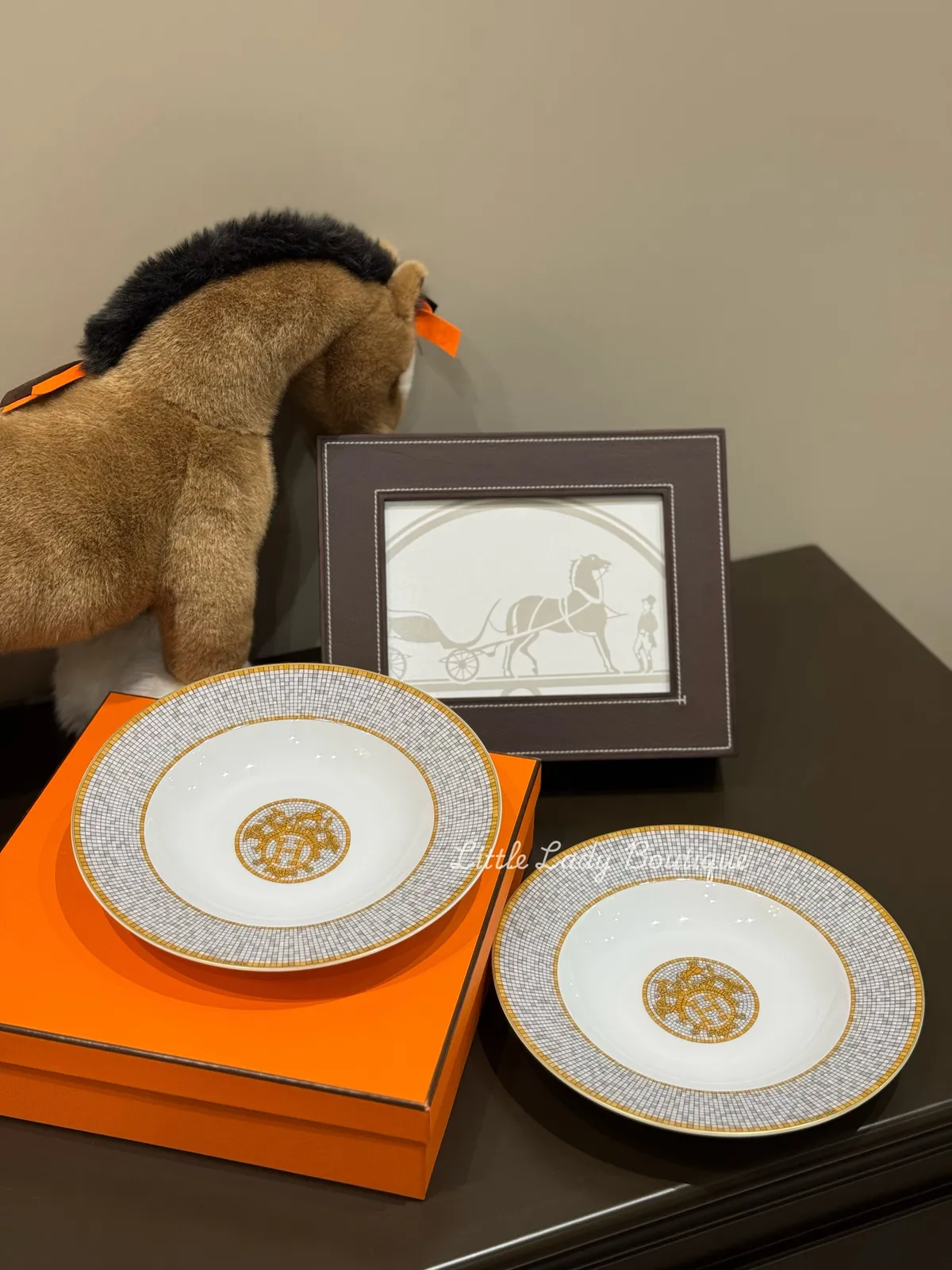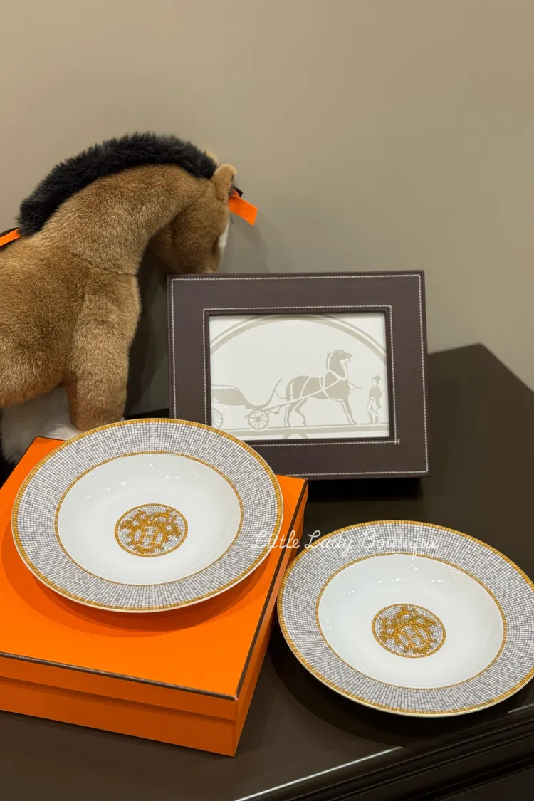 HERMES 馬賽克24 金色 淺湯盤 (直徑:22 cm) (2個一組)