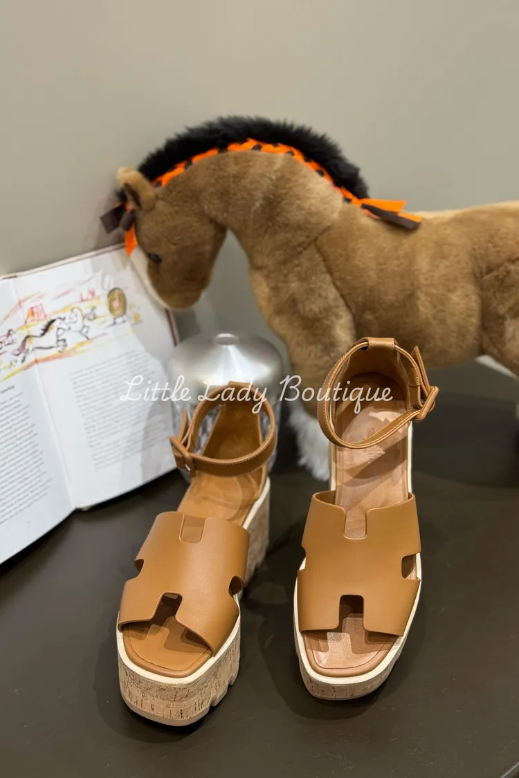 HERMES 女士 Luce 30 駝色 厚底踝帶涼鞋(跟高6.5CM)