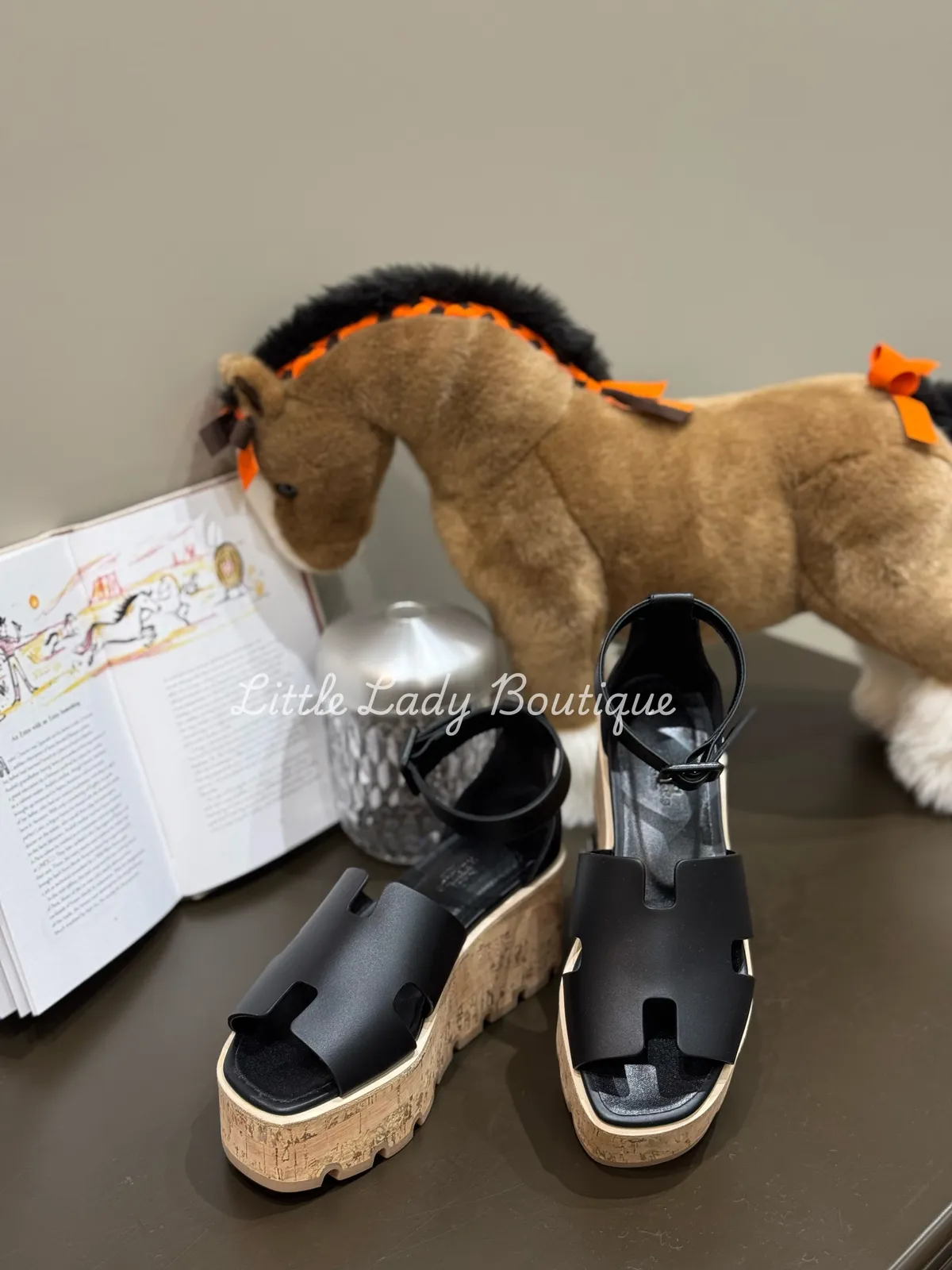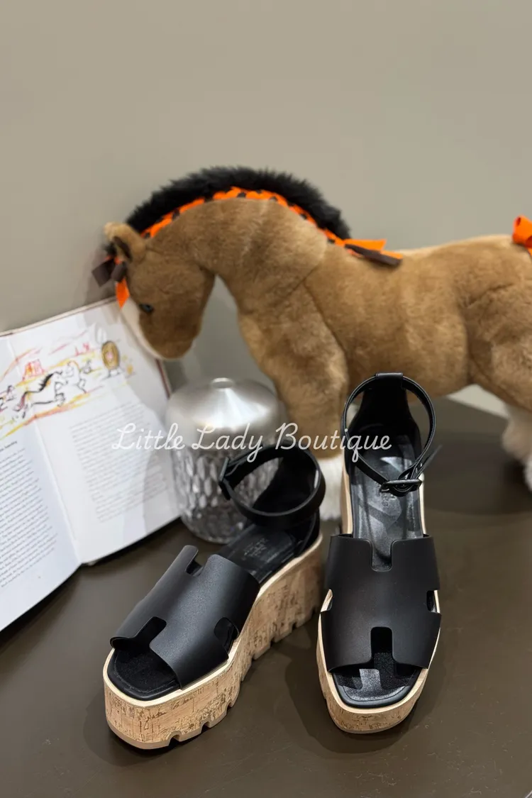 HERMES 女士 Luce 30 黑色 厚底踝帶涼鞋(跟高6.5CM)