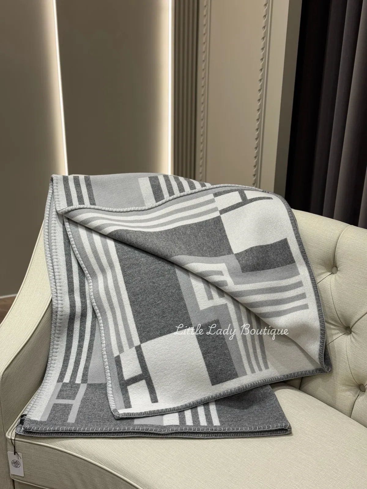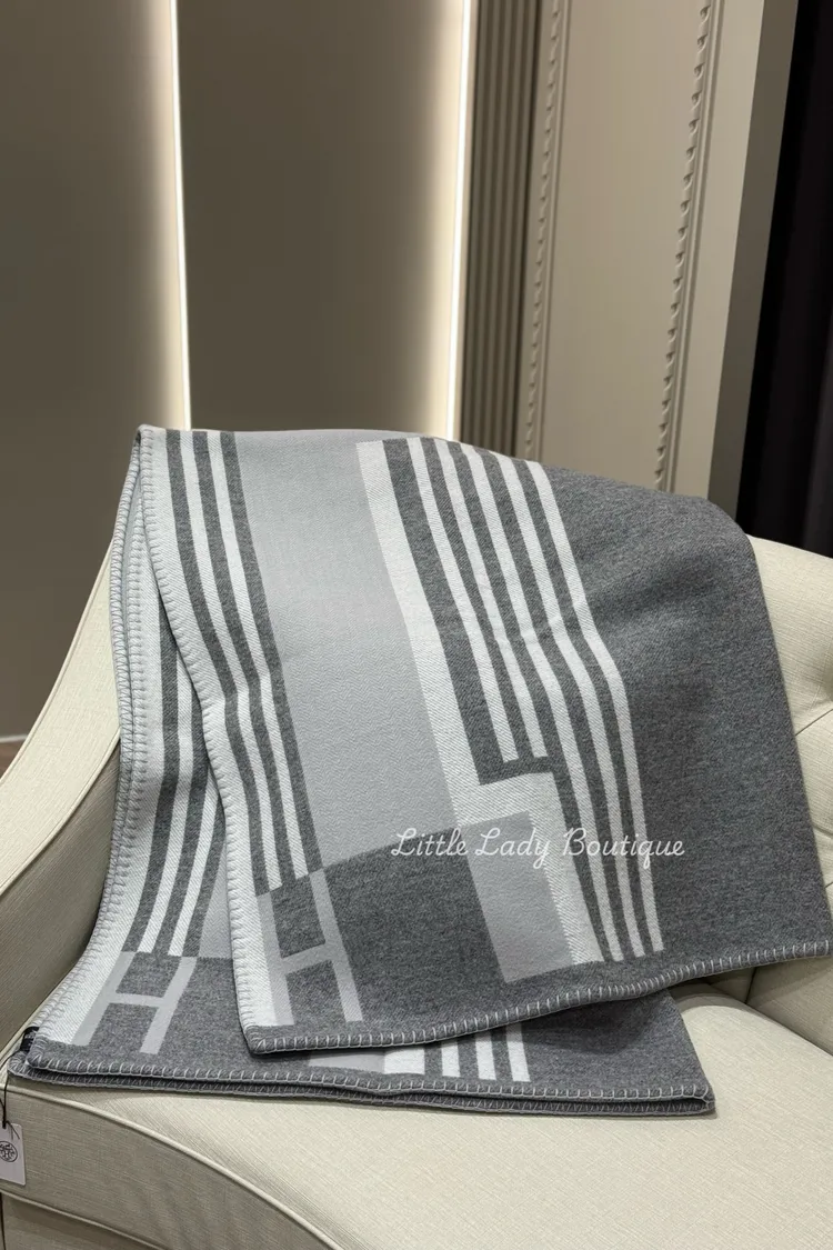 HERMES Ithaque 深淺中灰色 4邊小H 中間大H 沙發毯 (170*135