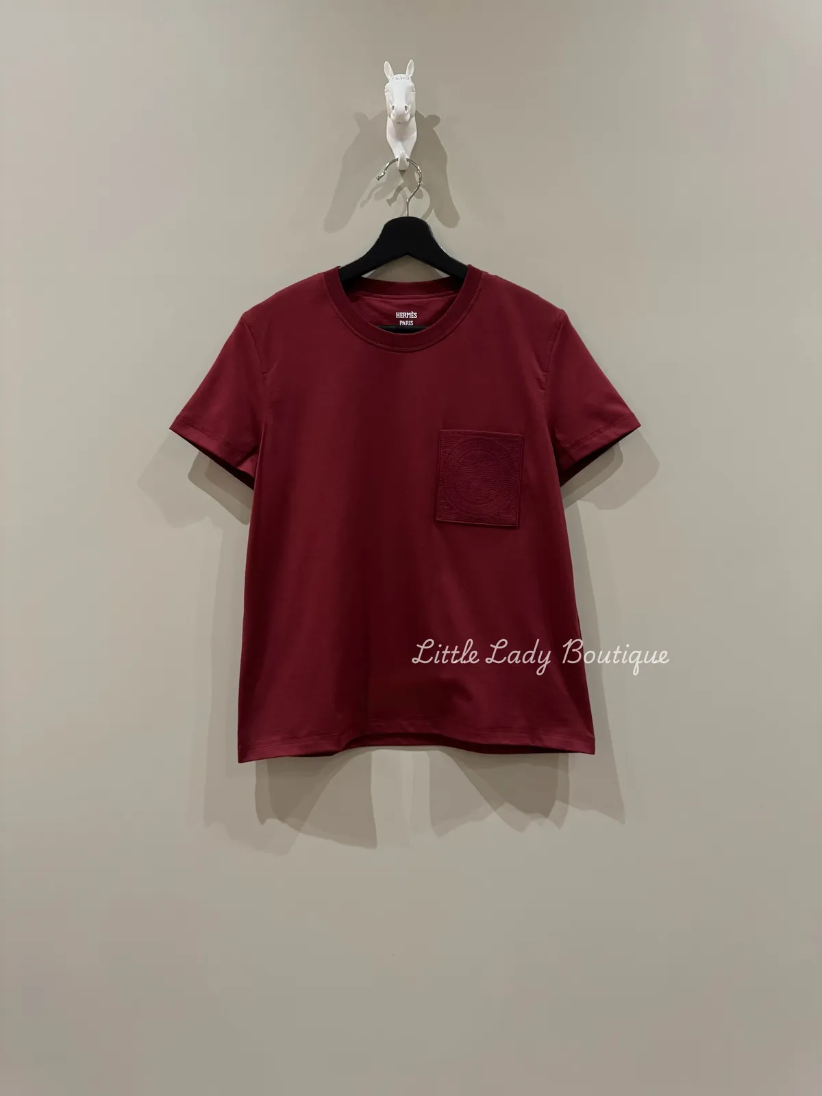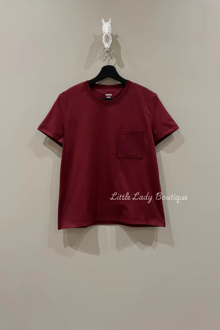 HERMES 女士 胭脂紅底 左胸口袋刺繡馬賽克H圖案 短袖上衣 (100%棉)(胸50/