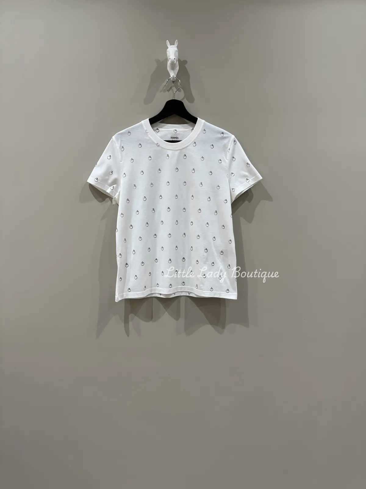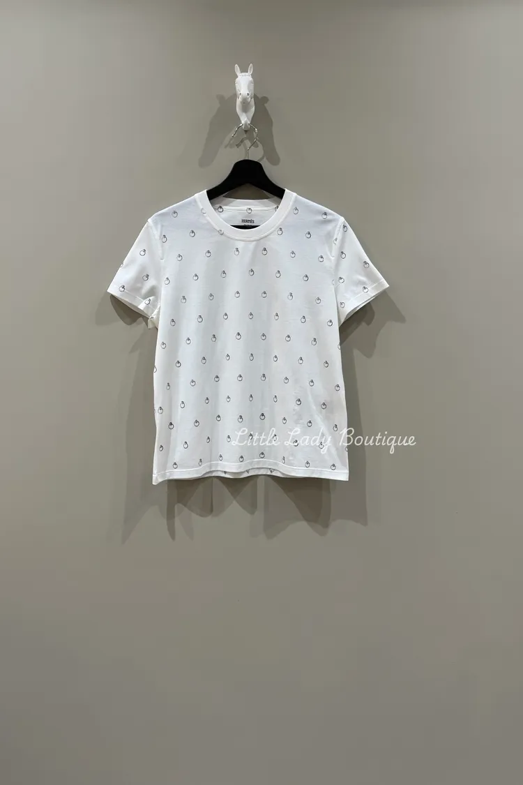 HERMES 女士 白底 滿版環釦圖案 短袖上衣 (100%棉)(胸50/長60)