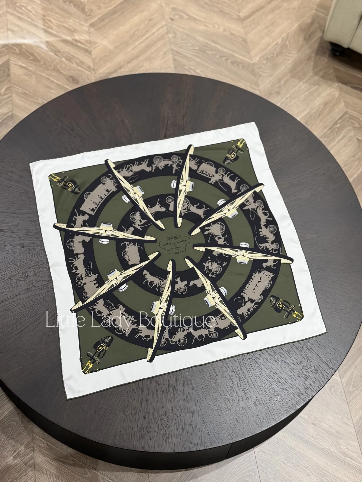 HERMES 70*70 絲巾 滾動的巴黎 (白色/軍綠 /大象灰)
