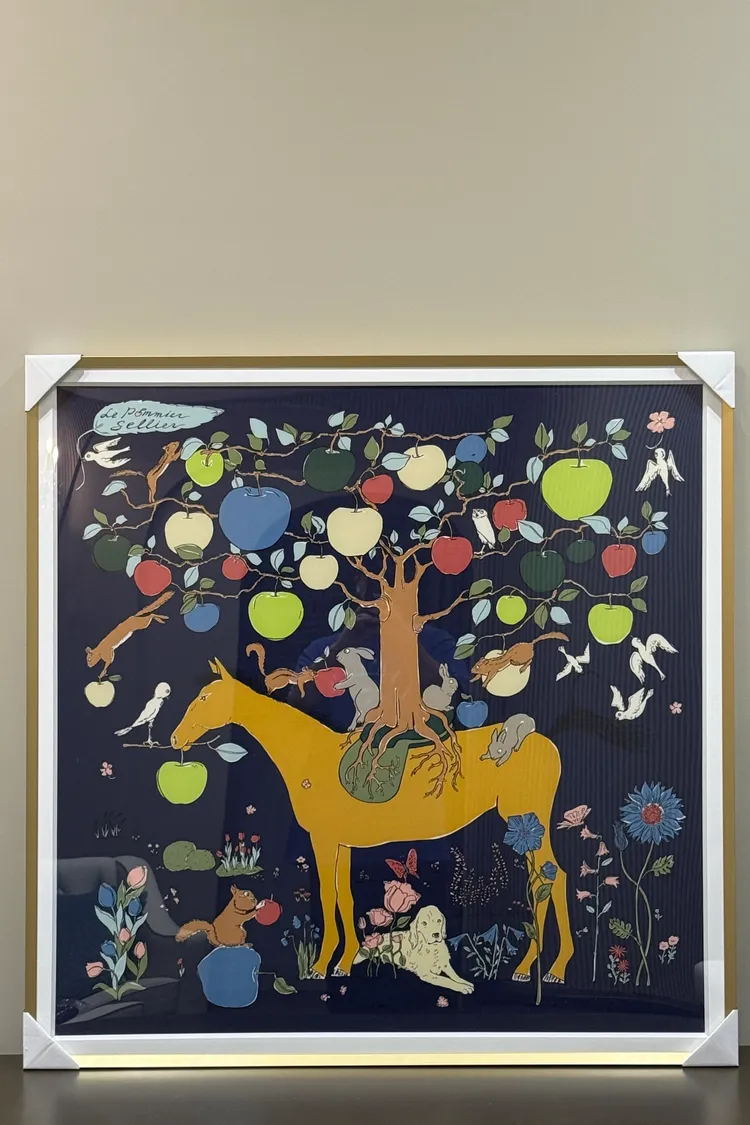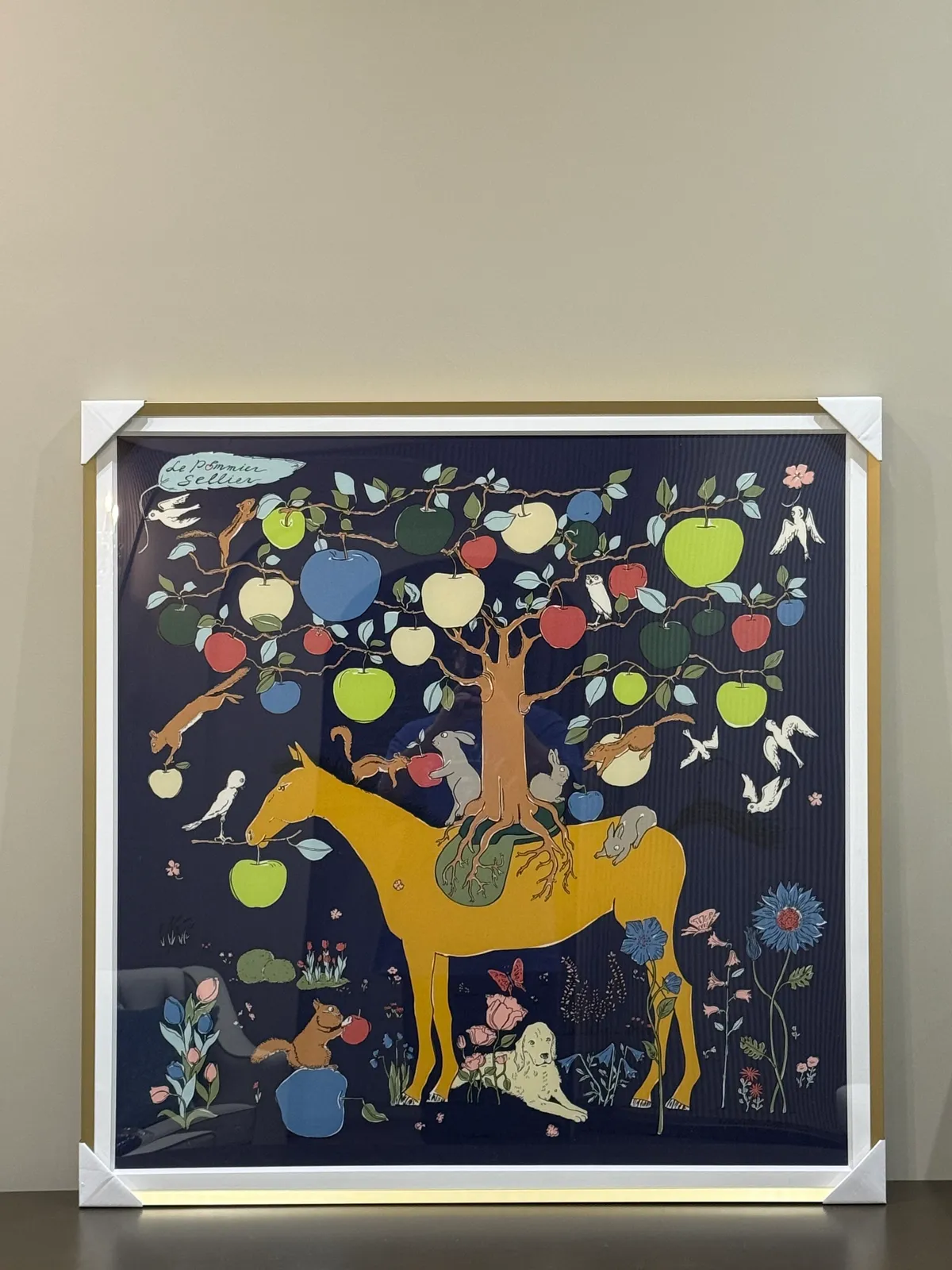 (含框)HERMES 90*90 絲巾 馬鞍上的蘋果樹 (海軍藍 / 金褐色 / 綠色)
