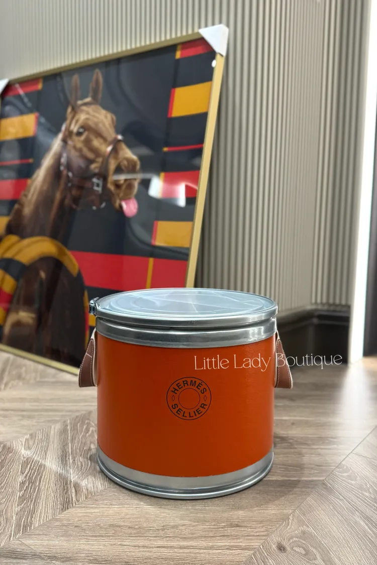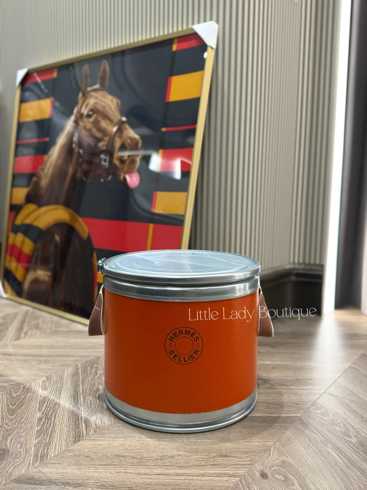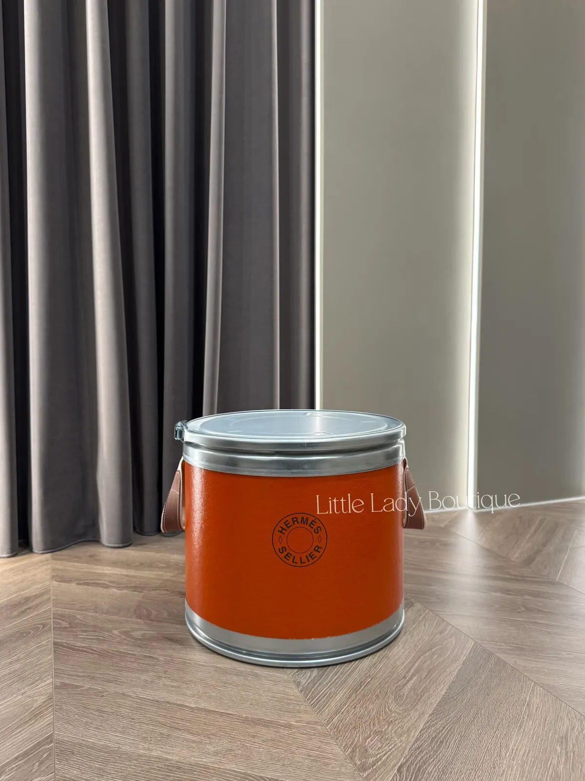 HERMES 9J 火焰橘 小 圓筒置物 飼料桶 (高32.5 / 直徑37)